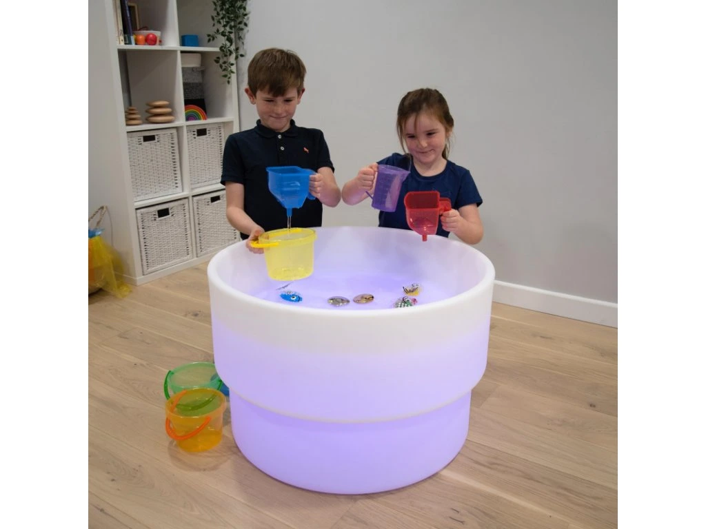 Používejte s průhlednými hračkami, vodou, pískem nebo barevnými kapalinami – podsvícení zvýrazní jejich strukturu a barvy.
