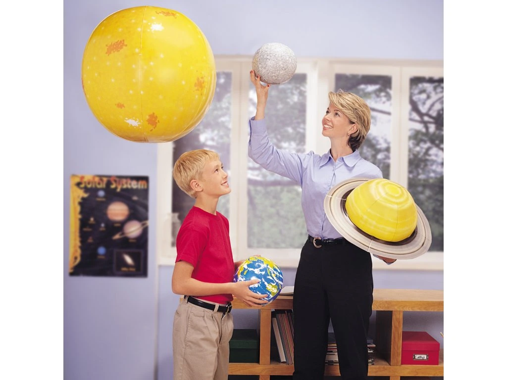 Nafukovací sluneční soustava je skvělou pomůckou k tomu, jak dětem vysvětlit postavení zeměkoule ve vesmíru vůči slunci a měsíci a přiblížit i ostatní planety v rámci sluneční soustavy.