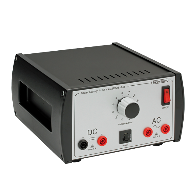 Napěťový zdroj je dobrou a ekonomickou volbou pro základní školy, pro jednoduché experimety s žárovkami, rezistory atd. Přístroj je vybavený tepelnou pojistkou a ochranou proti přetížení (>6 A) a tlačítkem Reset. Výstupy tvoří 4mm bezpečnostní zdířky.