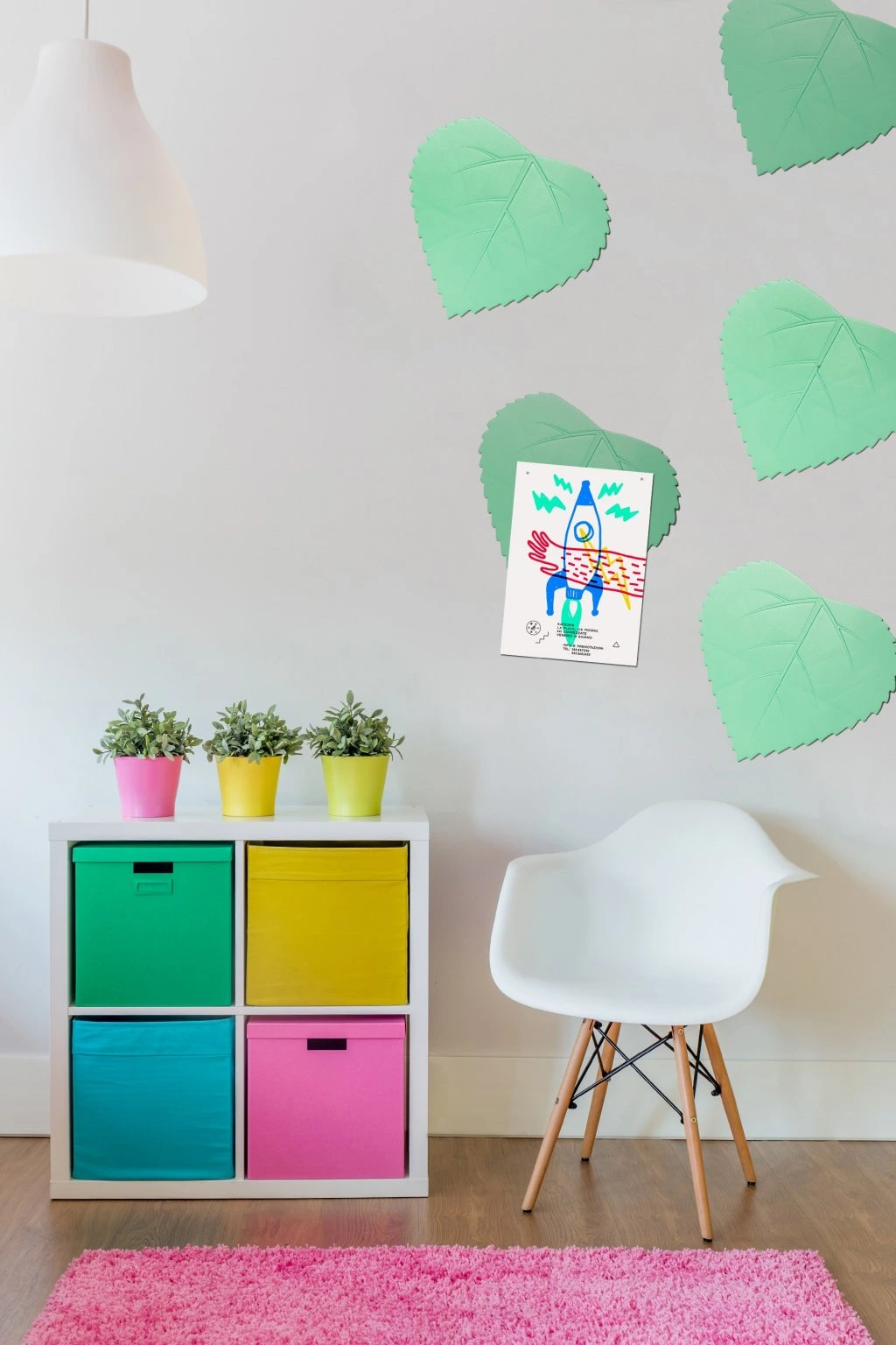 Samolepicí nástěnka ve tvaru LÍSTKU skvěle doplní Váš interiér. Samolepicí nástěnka ve tvaru LÍSTKU je dostupná ve dvou barevných variantách: zelená a tmavě zelená.