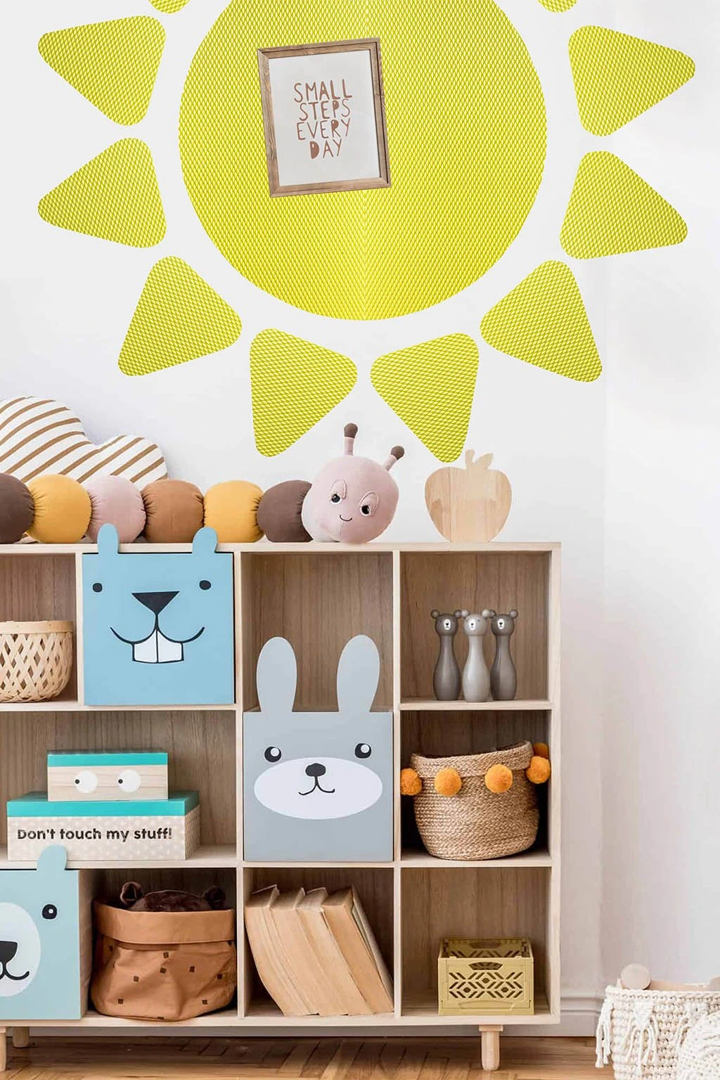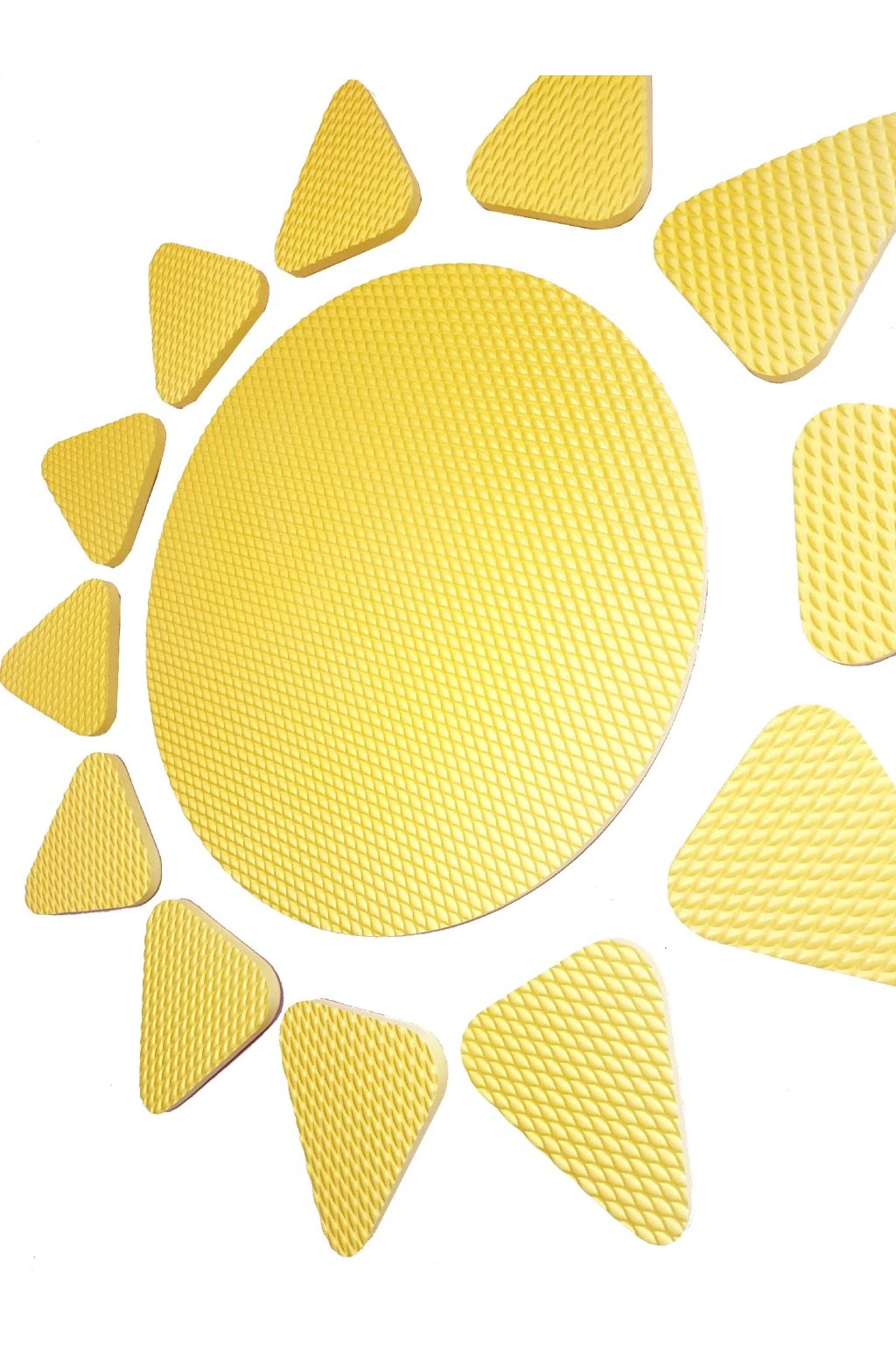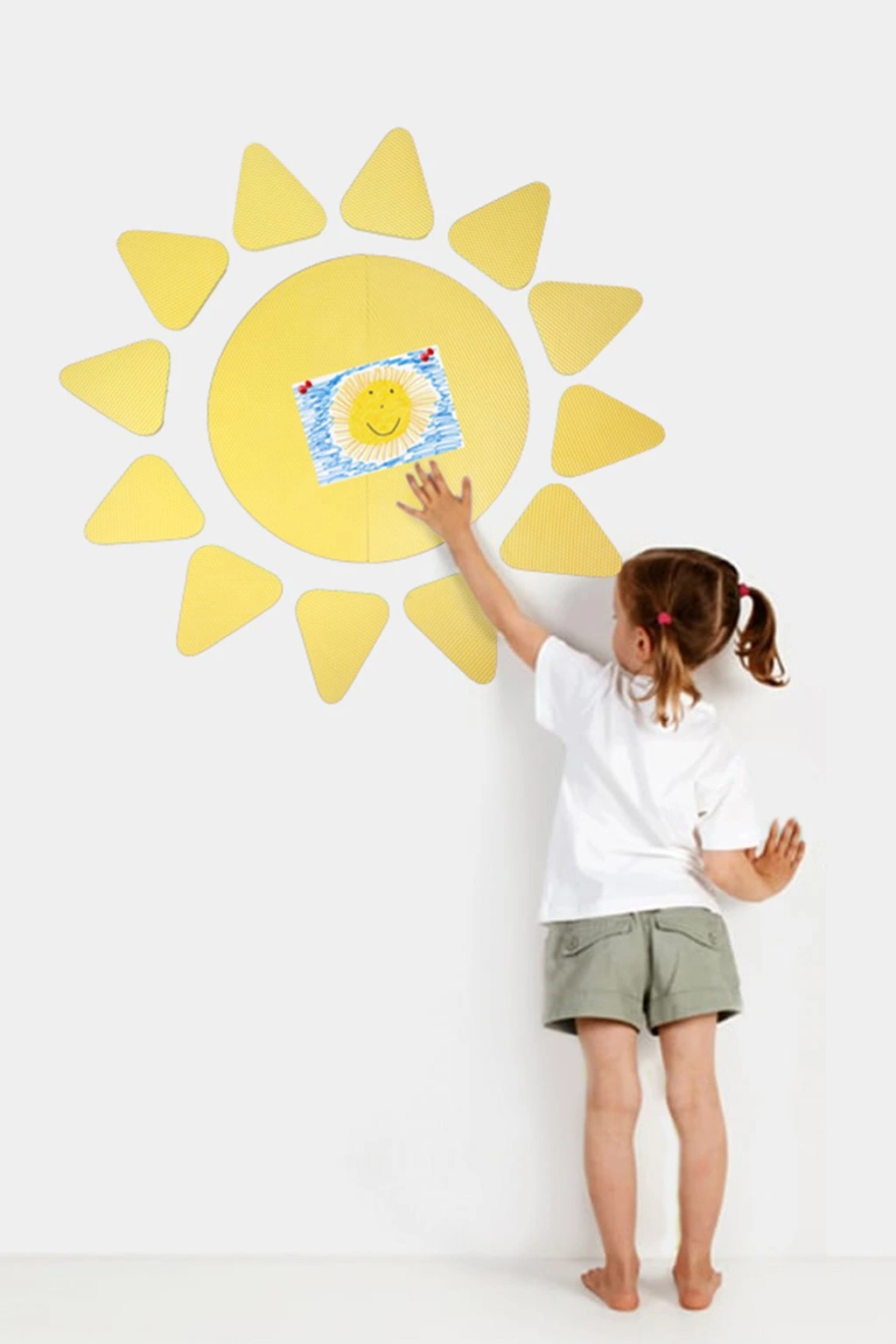 Nechte doma vysvitnout sluníčko! Pěnovou nástěnku ve tvaru sluníčka přilepíte jednoduše na jakýkoli rovný povrch.