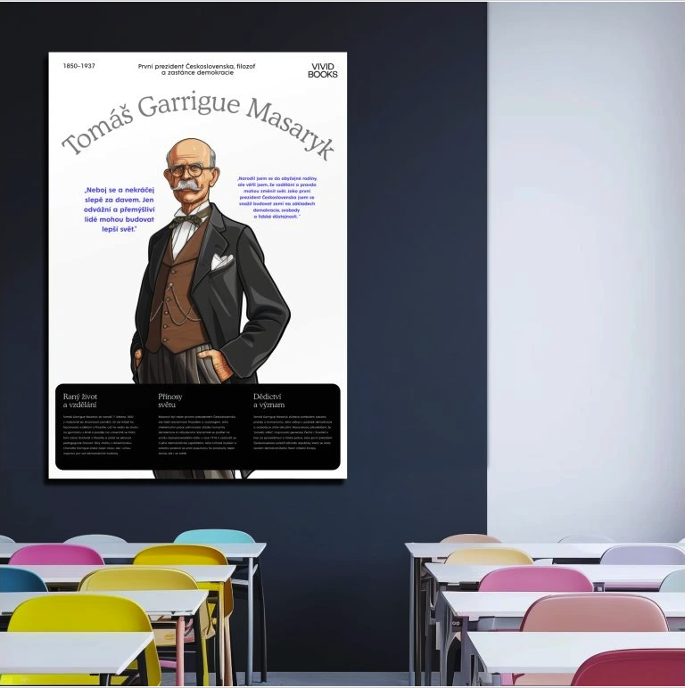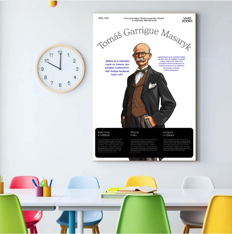 Plakát kromě přehledných informací o životě osobnosti obsahuje také inspirativní citáty, které mají děti zaujmout na první pohled.