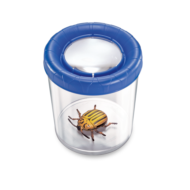 Velký plastový kelímek pro oboustranné pozorování. Víčko, ve kterém je vsazena plastová čočka, je možné použít pro pozorování v kelímku nebo jej lze nasadit na spodní část kelímku a pozorovat tak např. brouka lezoucího po stromě (viz obrázek). Víčko má ventilační otvory a je tak možné pozorovat živý hmyz. Dále je kelímek vhodný k pozorování všech drobných předmětů, menších rostlin, kamínků atd.