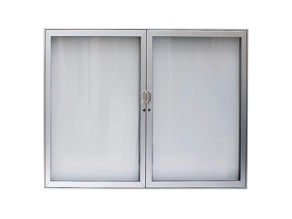 Odolné oboustranné dvoukřídlé vitríny z profilu masivní konstrukce /hloubka 120mm/, jsou určeny pro aplikace v místech, která umožňují volný přístup k vitríně z obou směrů - volná dlážděná prostranství, chodníkové niky apod., zároveň jsou díky svému provedení prostorově nenáročné. S mobilními sloupky s přírubou je lze používat také jako přemístitelný interierový prvek.