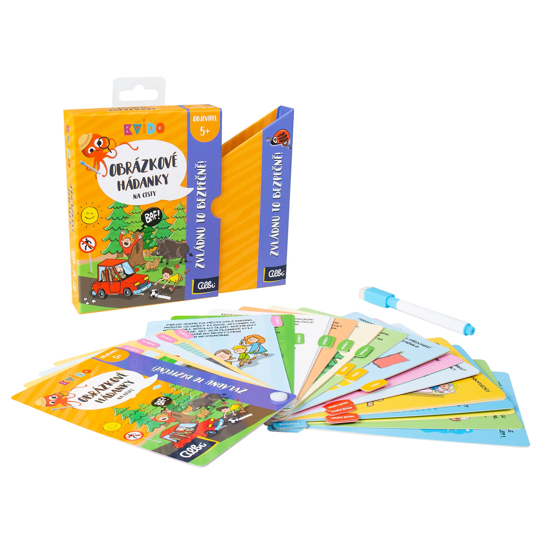 Obrázkové hádanky na cesty od Kvída jsou originální ilustrované hádanky od českých autorů, které rozvíjí znalosti dětí v různých oblastech. Na děti čeká 70 nápaditých a zábavných úkolů, jako například dokreslování, spojování, hledání rozdílů, počítání, vybírání správné odpovědi a další.