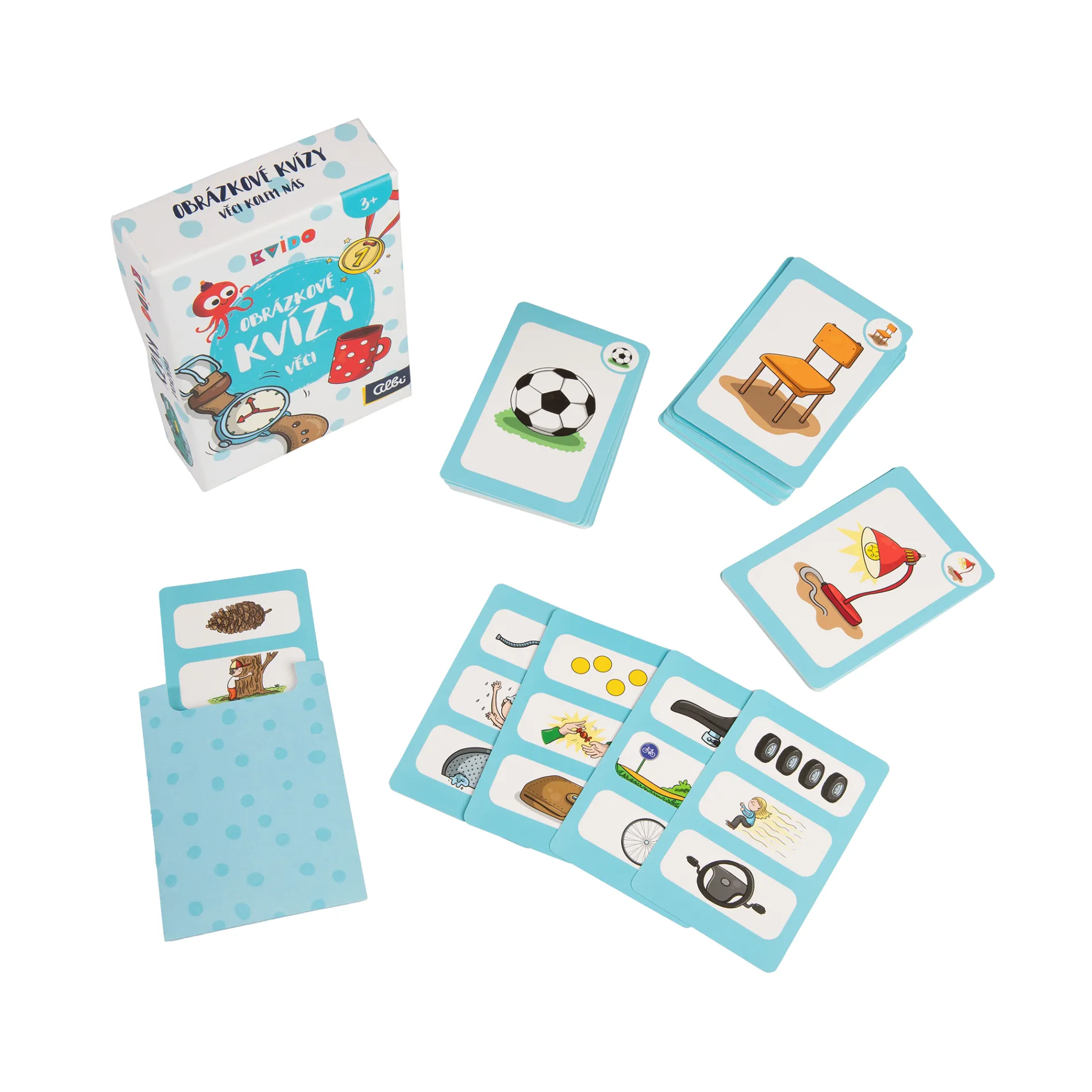 Obrázkové kvízy obsahují 50 ilustrovaných karet. Na jedné straně karty postupně odkryjete až 3 obrázkové nápovědy, podle kterých uhádnete skrytou věc. Na druhé straně najdete správné řešení.