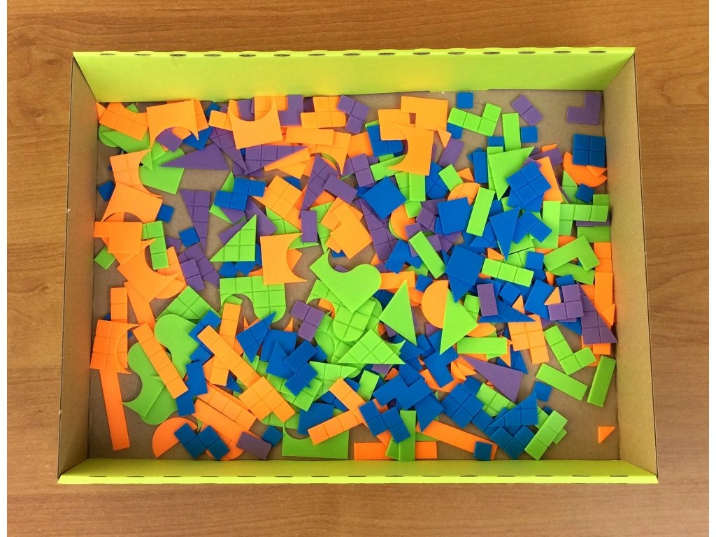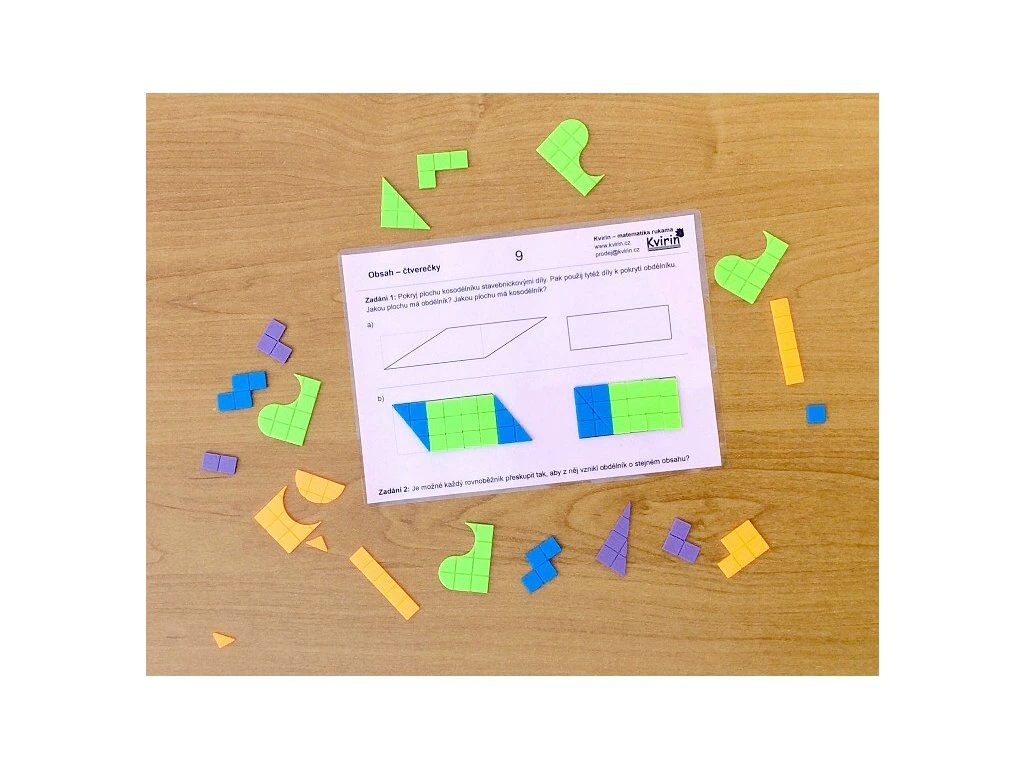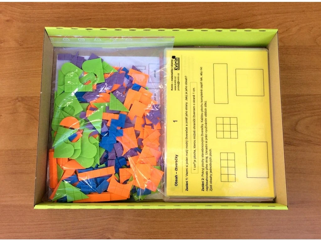 Sada je určena pro práci až 6 žáků a obsahuje 330 plastových dílků různých tvarů. Každý dílek má na povrchu vyznačené čtverečky o velikosti 1 × 1 cm, díky kterým mohou žáci snadno určit obsah tvaru pouhým spočítáním čtverečků při pokládání dílků vedle sebe.