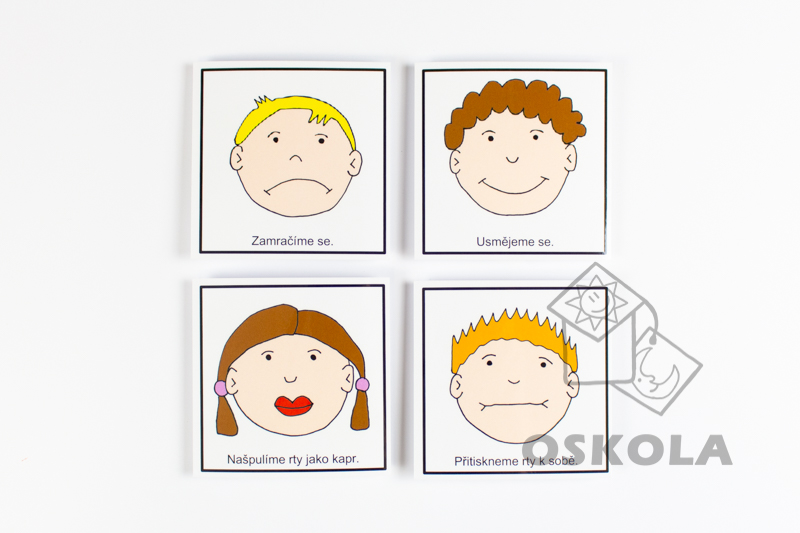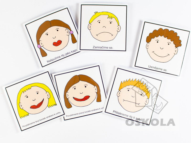 Sada obsahuje celkem 18 kartiček a na každé z nich je popsán a znázorněn jeden cvik k procvičení hybnosti rtů a jazyka.