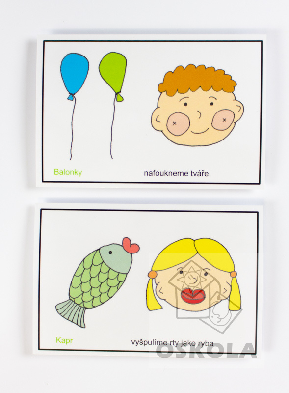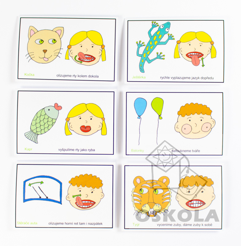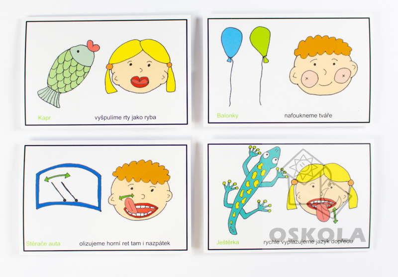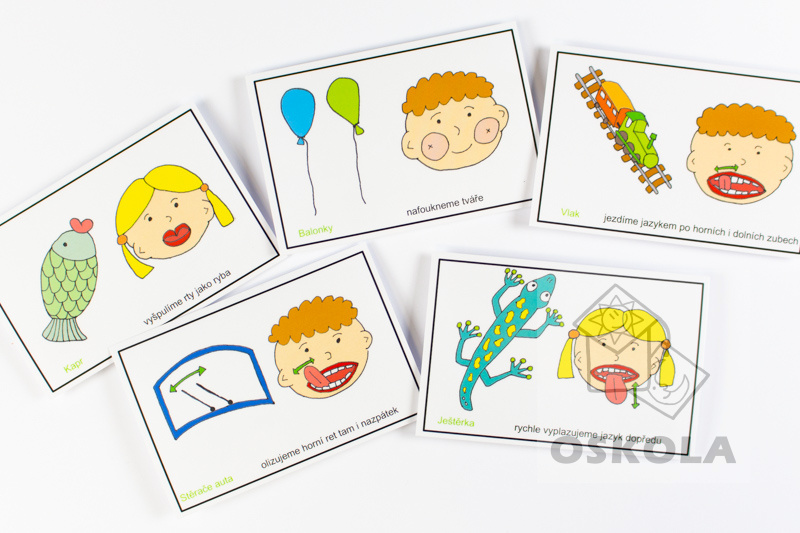 Díky kartičkám mohou děti provádět oromotorická cvičení zábavnou formou.