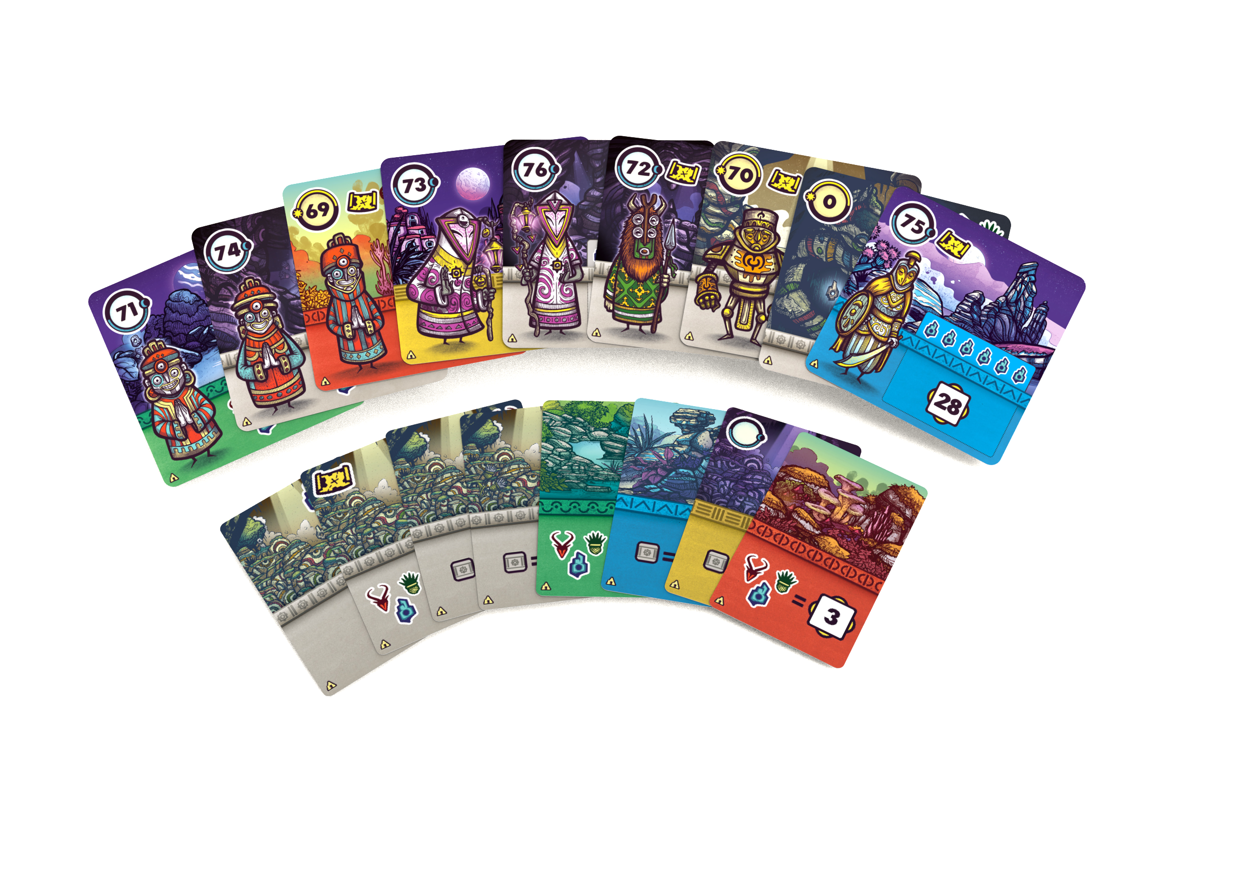 9 karet lokací, 8 karet svatyní, pravidla hry.