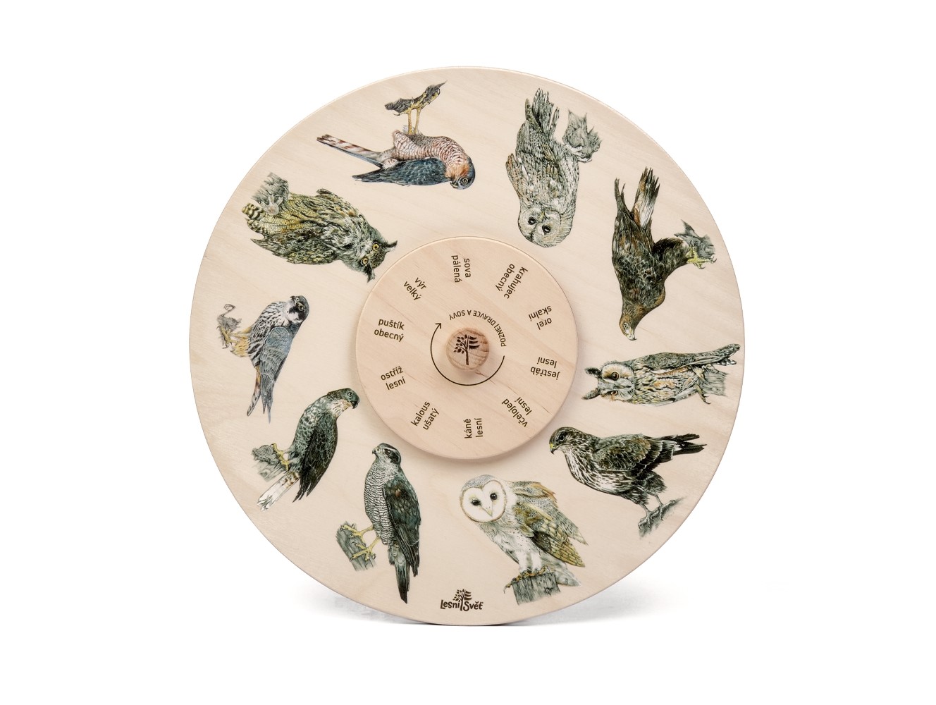 Poznáte sovu od orla ?S dřevěným otočným kolem od české značky Lesní svět to bude hračka!