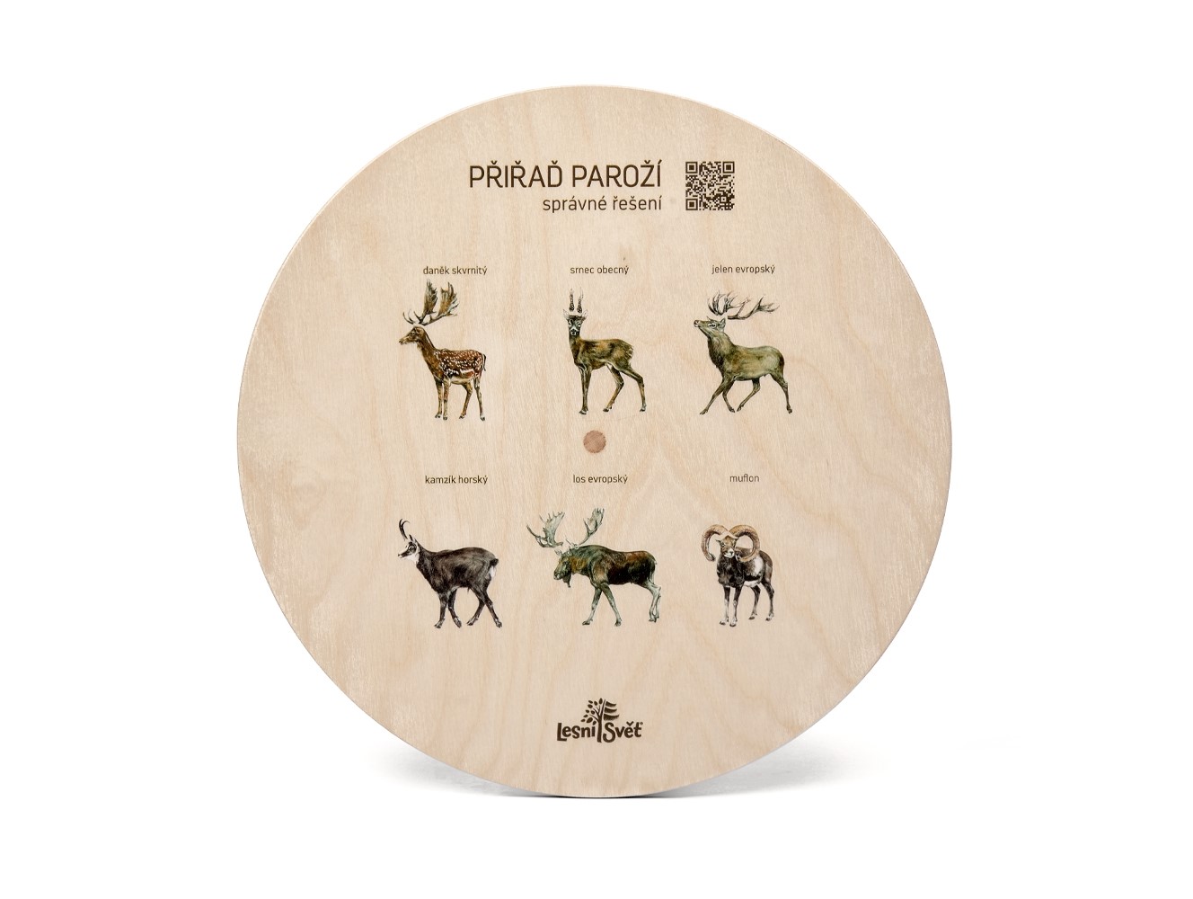 Úkol je jednoduchý a zábavný: Otáčejte horním dílem kola a zkuste přiřadit správné paroží k odpovídajícímu zvířeti. Nejste si jistí? Žádný problém! Správné řešení najdete prakticky natištěné přímo na zadní straně kola, takže si své znalosti můžete ihned ověřit.