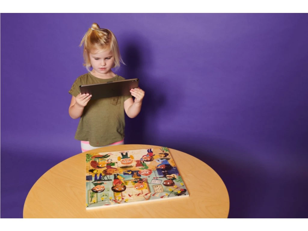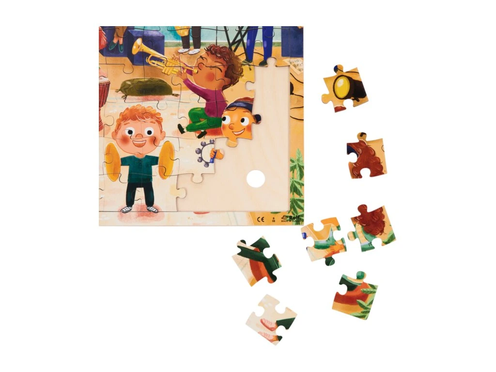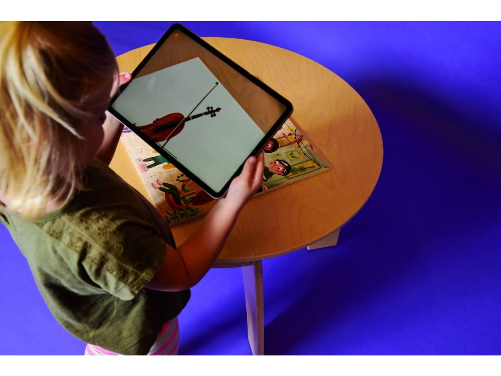 Kvalitní dřevěné puzzle s hudebními nástroji, které se rozezní vždy, když na ně namíříte mobilem/tabletem s volně dostupnou aplikací.