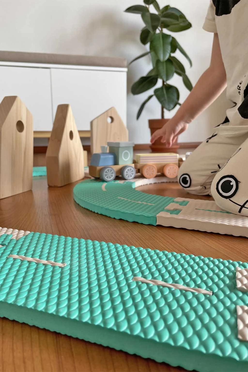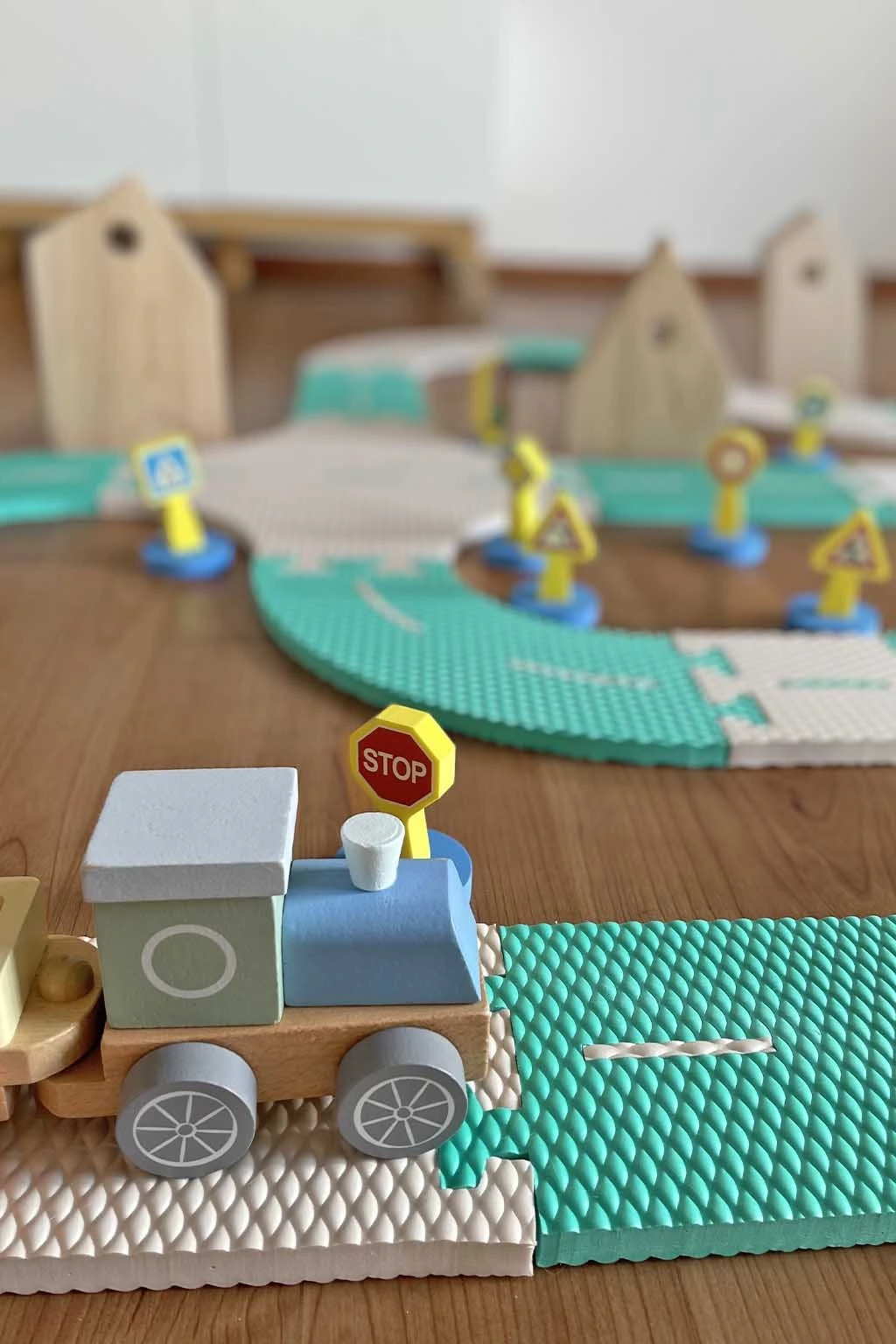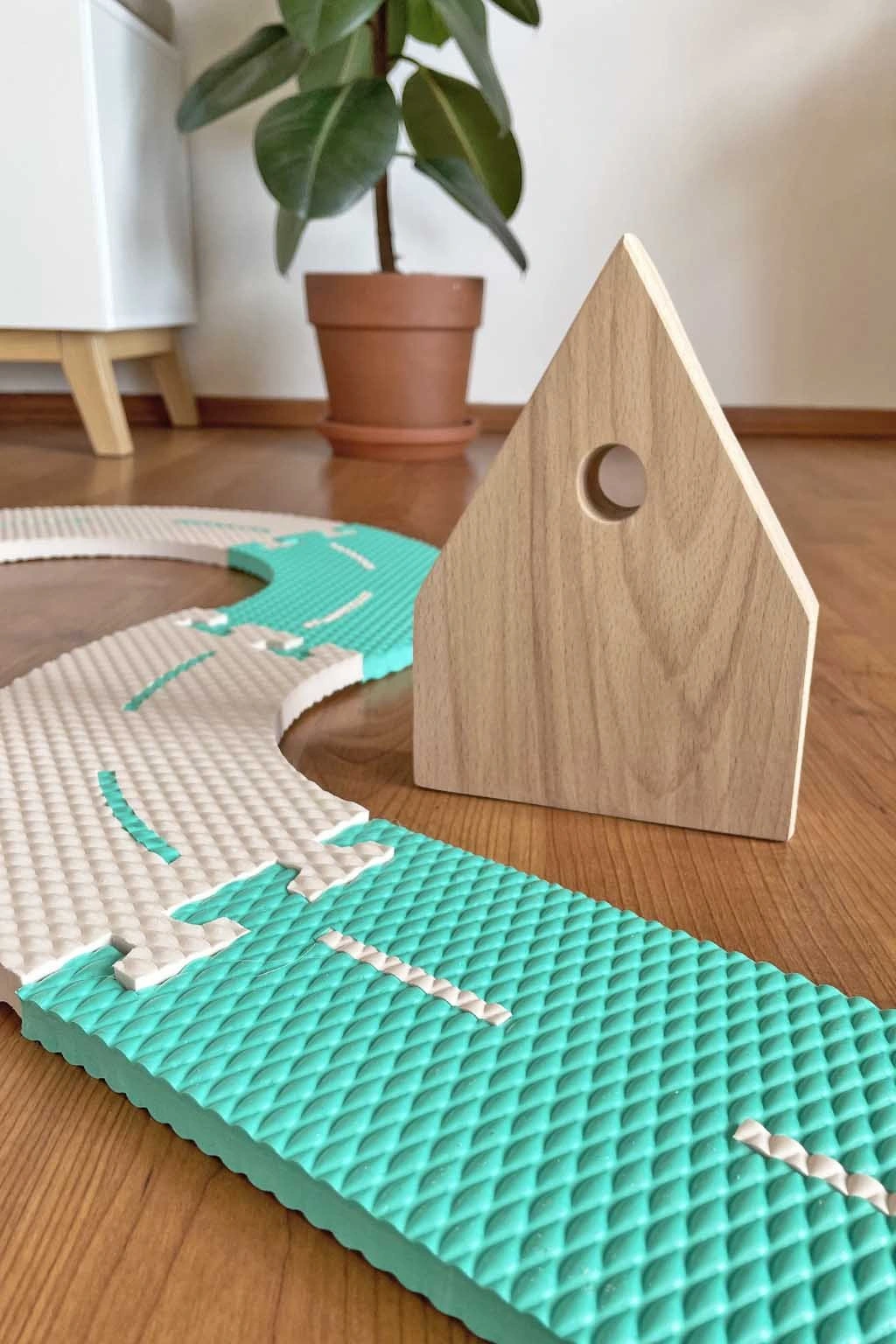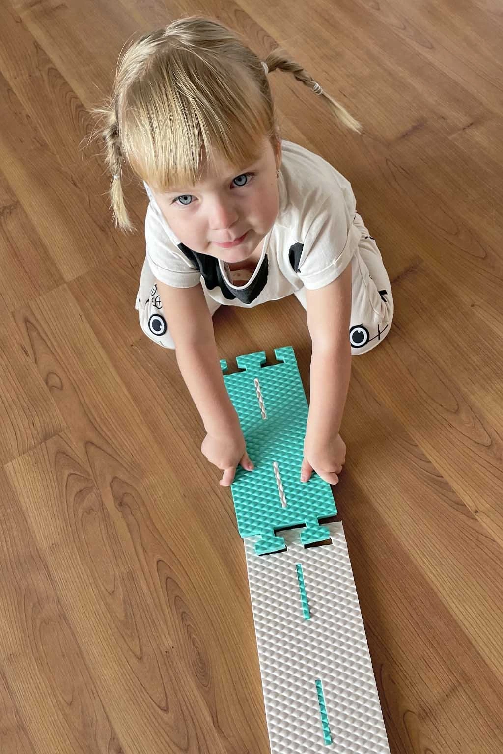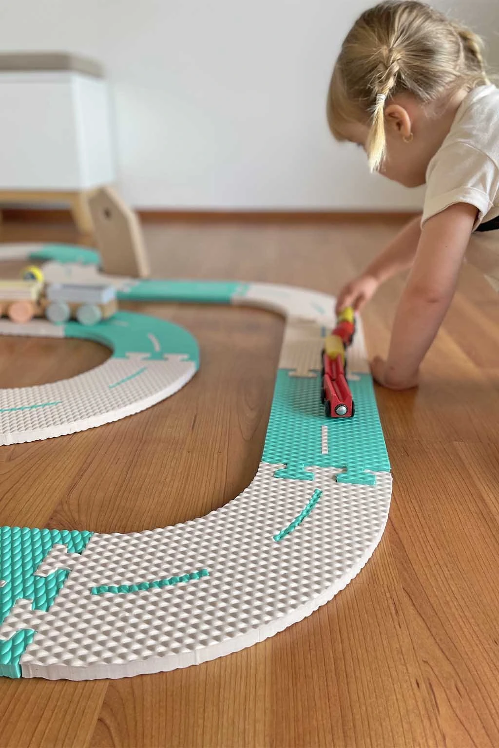 Díky jednotlivým dílům si můžete sestavit libovolné tvary dráhy. Autodráha má příjemný povrch a skládá se pomocí zámků. Barevnou kombinaci si volíte dle svého vkusu ze dvou barev.