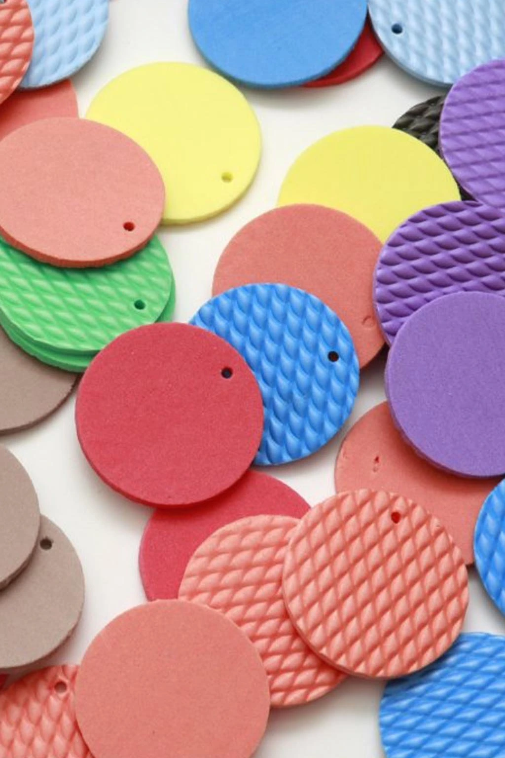 Materiál je lehký a měkký, ale přitom pevný a netrhá se. Z jedné strany mají medaile reliéf, z druhé jsou hladké.