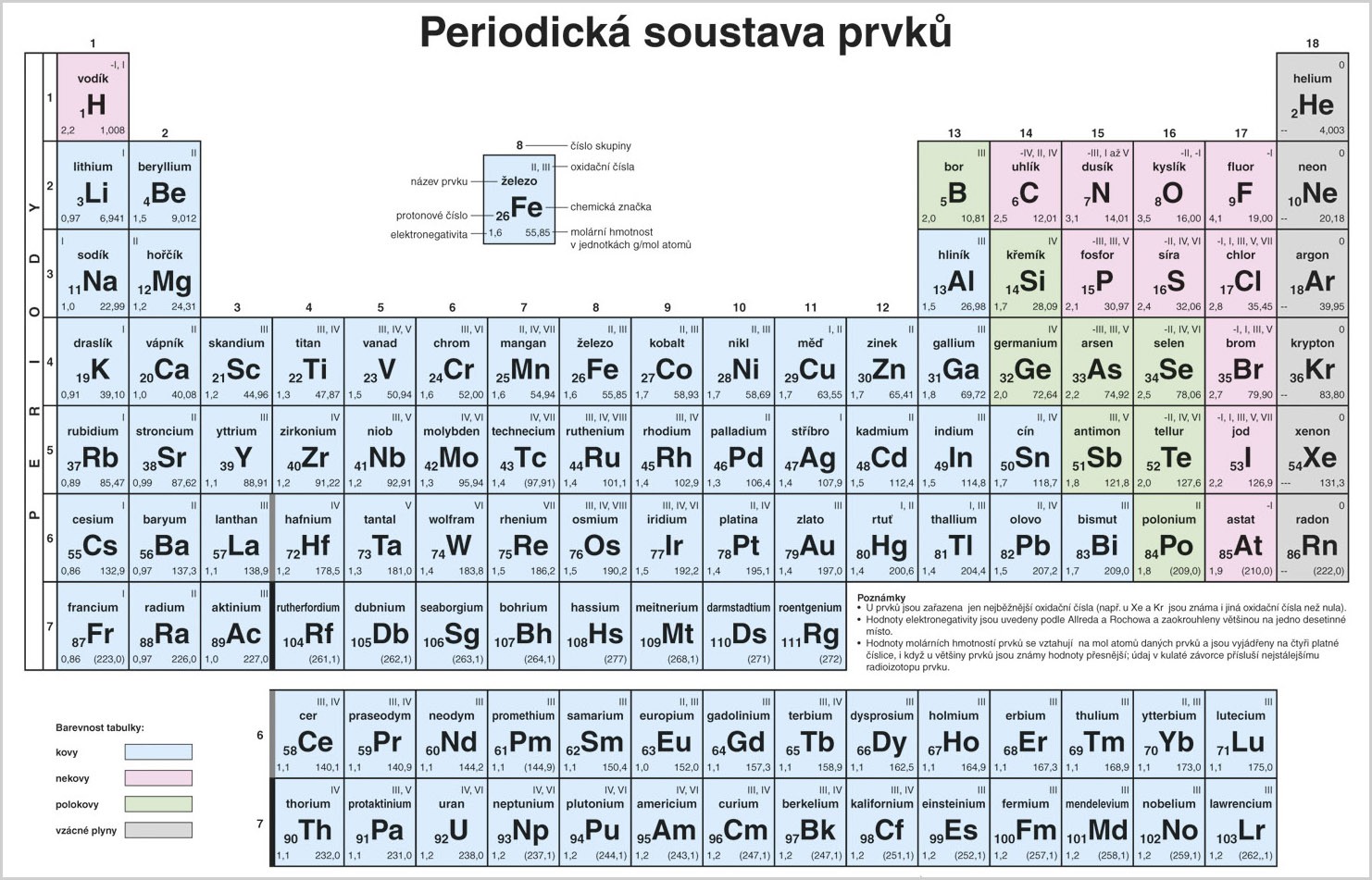 Užitečná a potřebná učební pomůcka pro každou odbornou učebnu chemie. Nová – moderní – přesná. V nabídce je ve dvou variantách – jednak pro základní školy, jednak pro školy střední. Plnobarevné provedení. Rozměr každé tabule:140 x 100 cm. Trvanlivé provedení s oboustrannou laminací, včetně závěsných lišt.