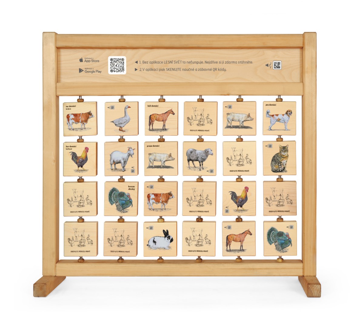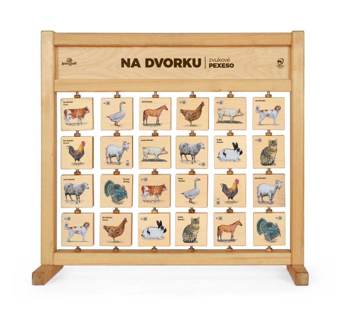 Pexeso je vyrobeno z kvalitního certifikovaného českého dřeva. Díky otočným nožičkám je prvek stabilní, ale zároveň ho lze snadno uskladnit nebo převézt v kufru běžného auta na jinou akci či přednášku.