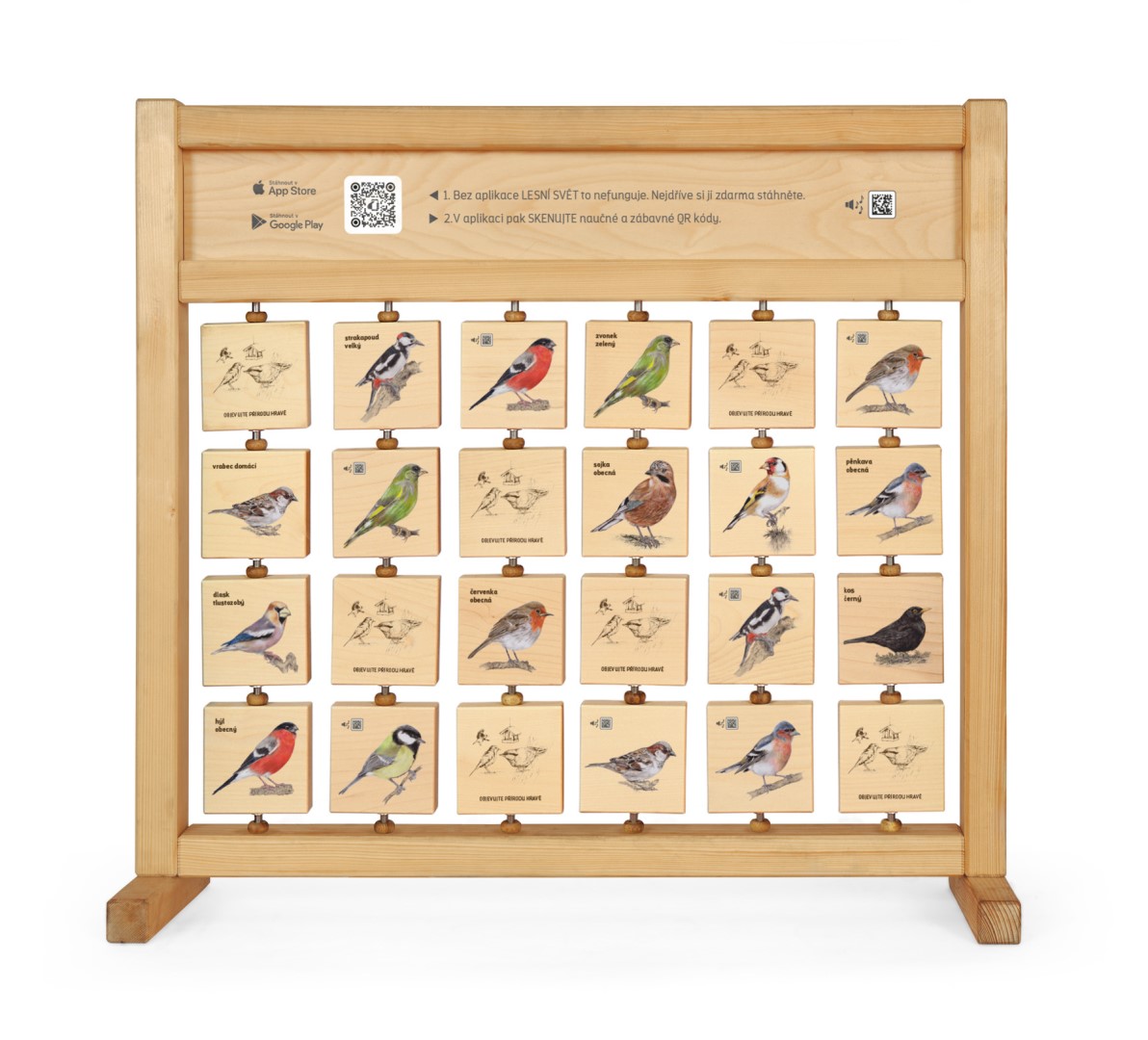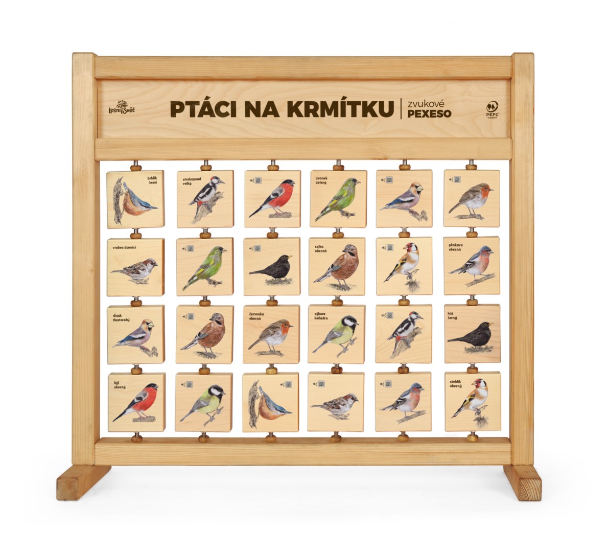 Na hrací desce najdete 24 otočných tabulek s nádhernými a věrně vyobrazenými kresbami našich ptáků. Klasické hledání dvojic je zde povýšeno na novou úroveň díky moderní technologii:
