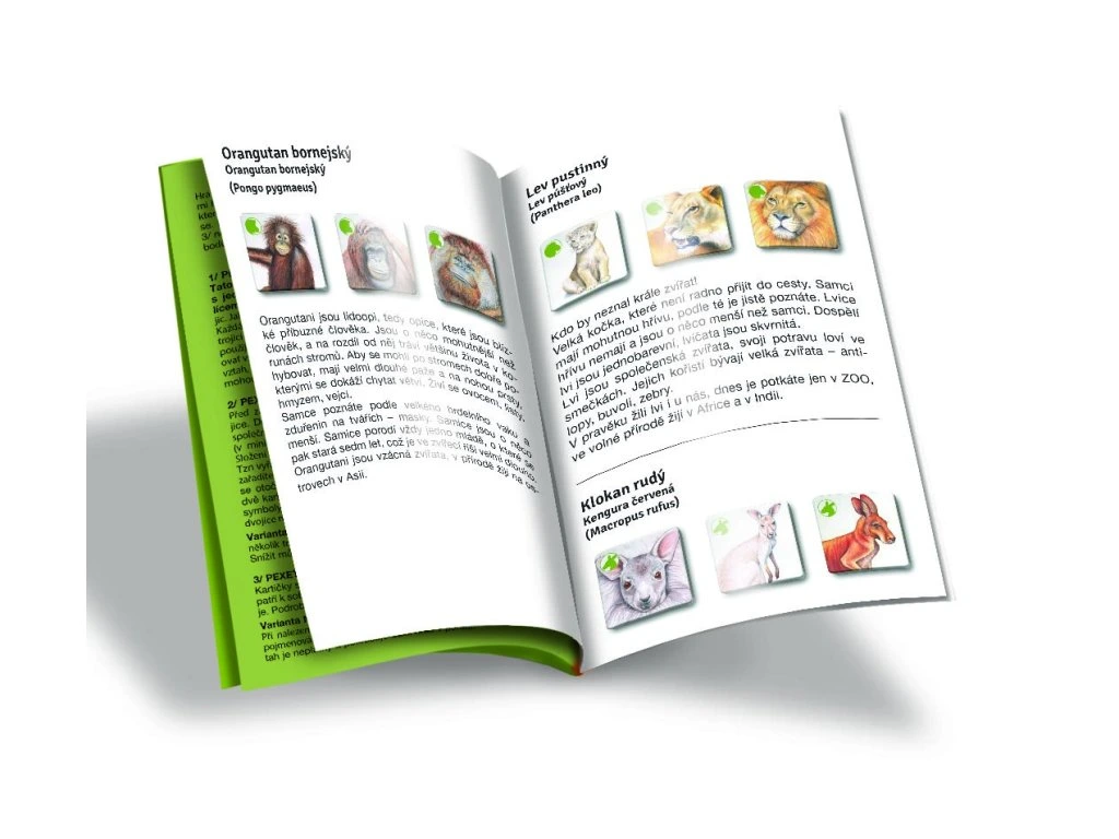 Pexetrio ZVÍŘECÍ RODINKY je zábavná hra inspirovaná pexesem, která děti zároveň i vzdělává. Děti se naučí poznávat různé živočichy, samce, samice a jejich mláďata podle hesla „škola hrou“.