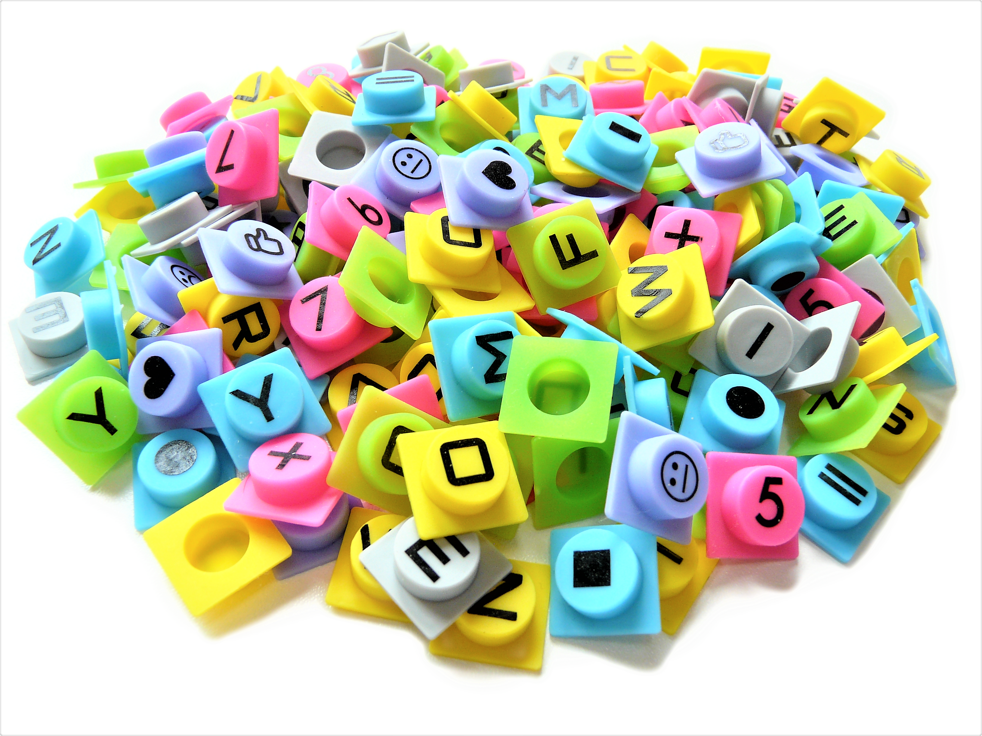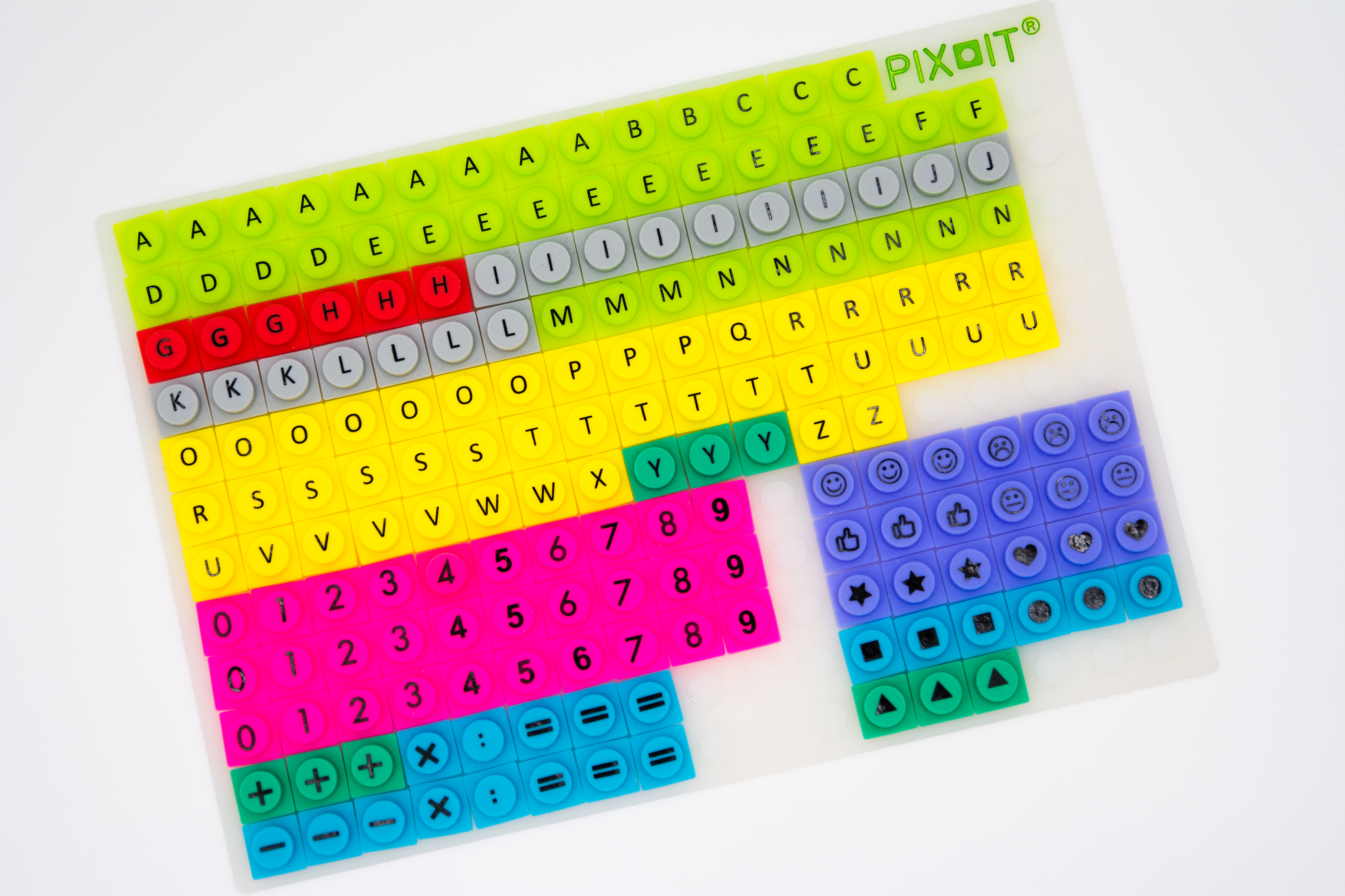 Úžasné veselé dílky PIX-IT v nových barvách s písmeny, čísly, znaky, tvary, symboly a smajlíky.