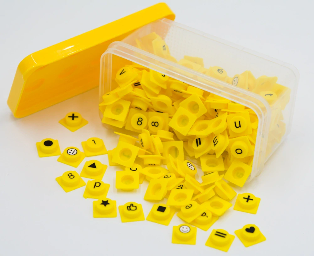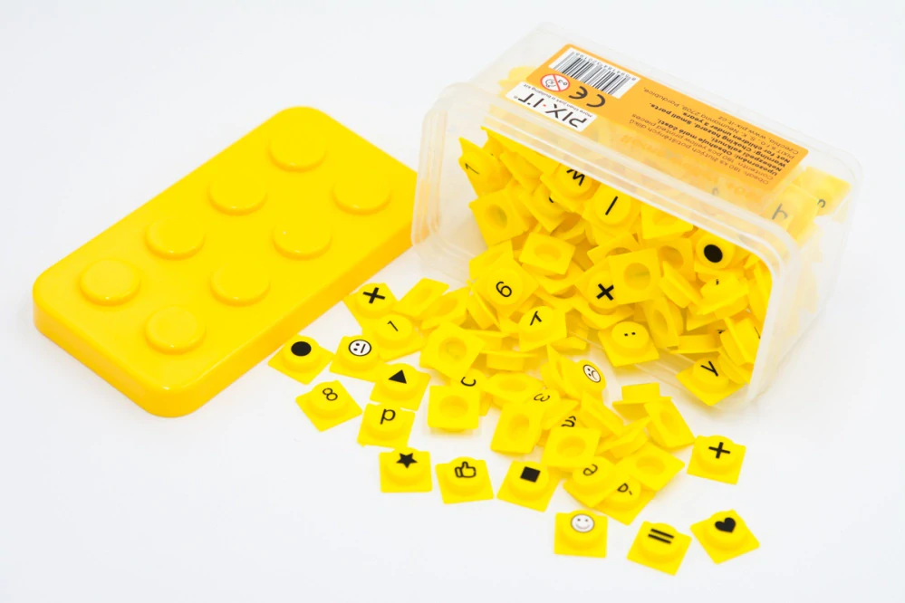 Toto rozšíření oblíbené české stavebnice PIX-IT přináší 180 veselých silikonových dílků v zářivé žluté barvě s potiskem malých písmen, čísel, znaků, tvarů, symbolů, smajlíků...