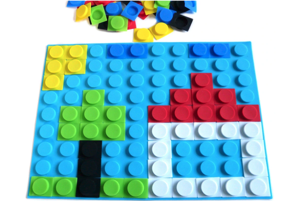 Stavebnice je vyrobena z měkkého a bezpečného potravinářského silikonu. Díky příjemné textuře a odolnosti jsou dílky vhodné pro malé děti i školky. Hotové obrázky si děti mohou vzít a pochlubit se rodičům, učitelům nebo kamarádům.