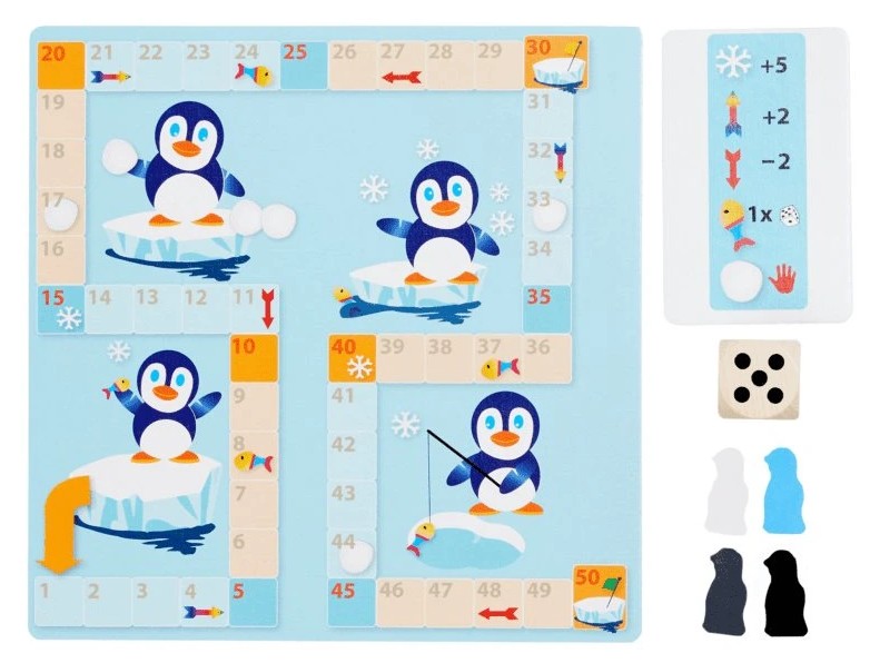 Dobrodružství s tučňákem Arturem: Cílem hry je jako první dorazit na ledovou kru s číslem 30 nebo 50.