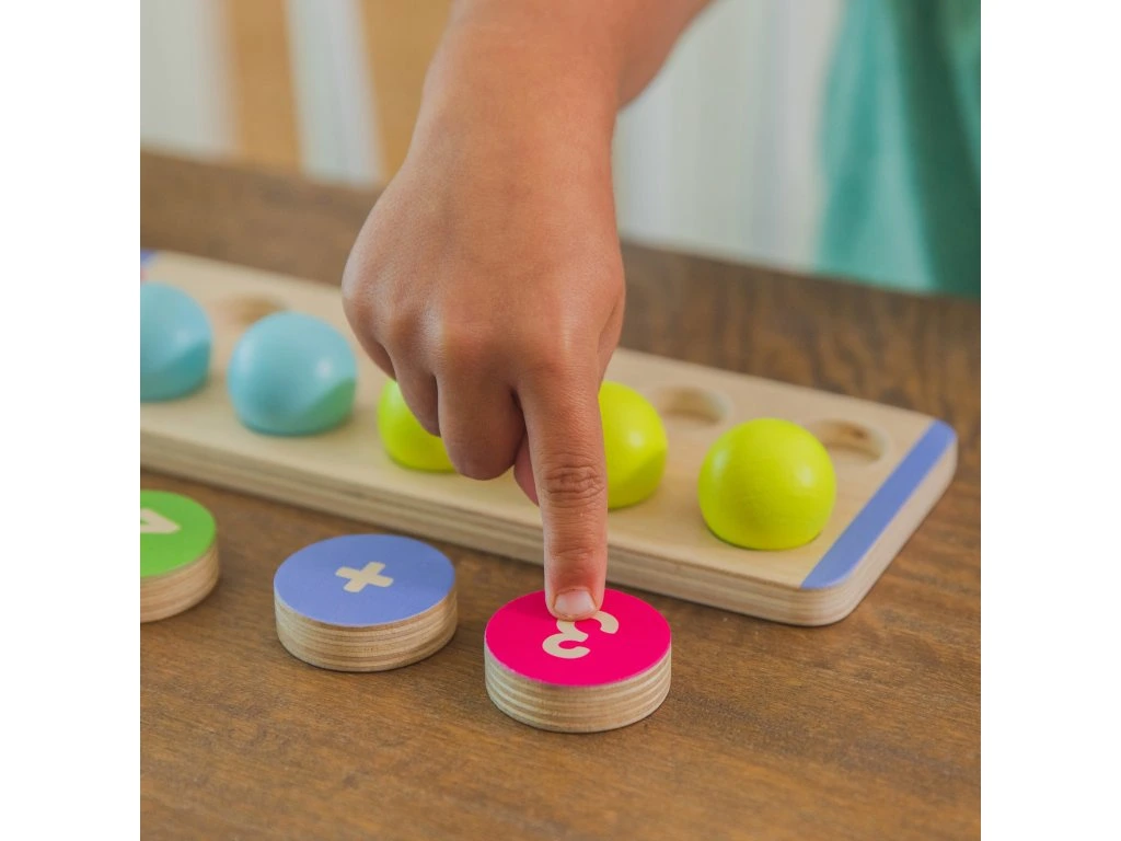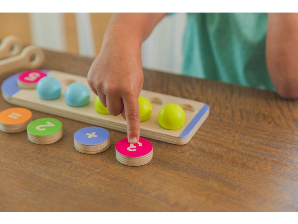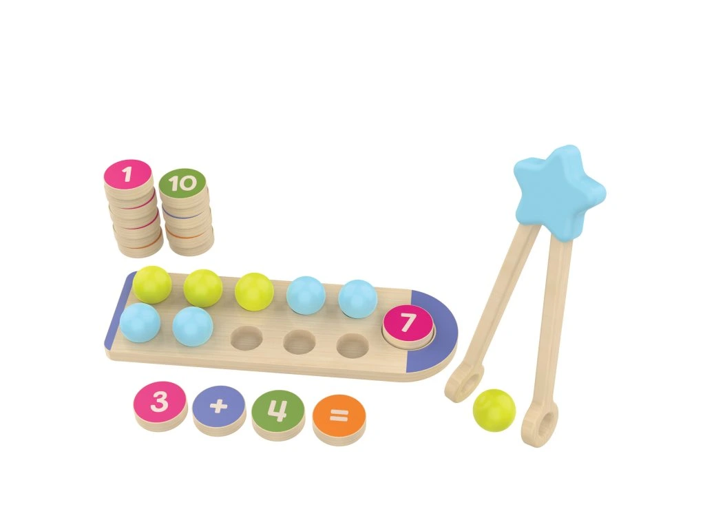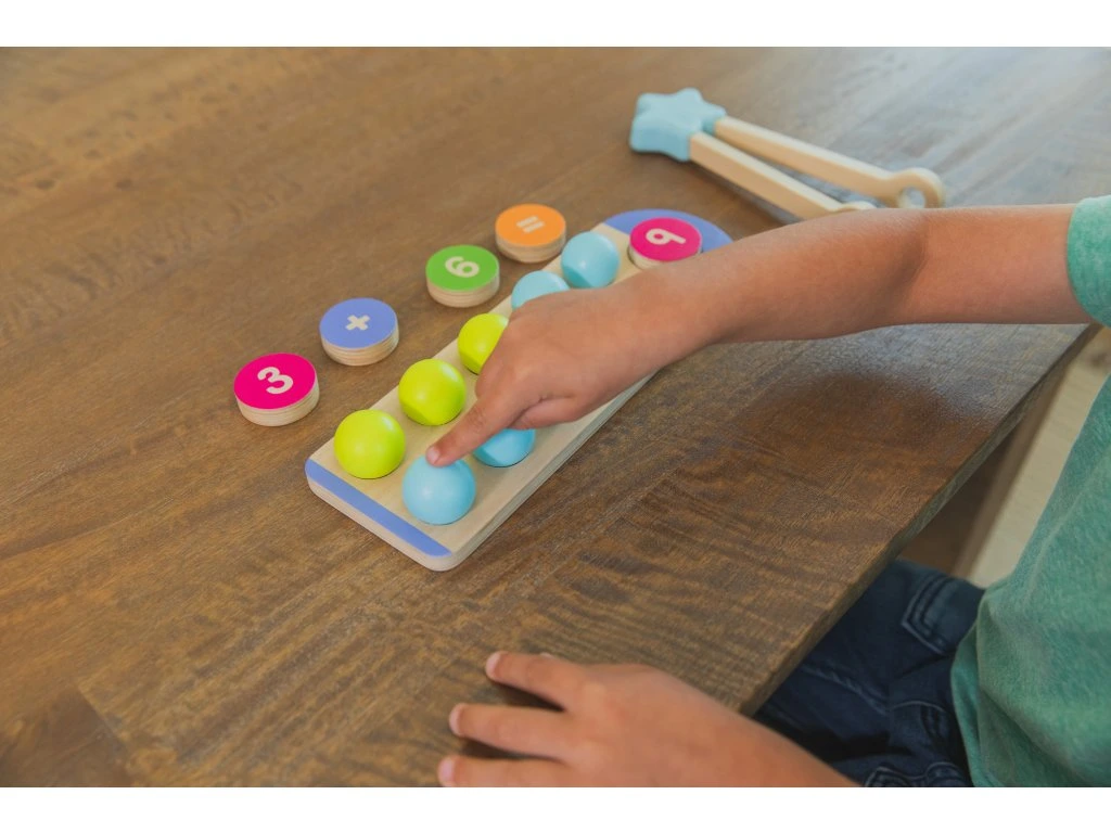 Zábavné počítání a trénink prstíků v jednom! Dřevěná matematická sada s barevnými kuličkami, čísly a velkou pinzetou pomáhá dětem osvojit si první matematické dovednosti a zároveň posiluje jemnou motoriku. Pomocí barevných kuliček, čísel a symbolů si děti přirozeně osvojují základy matematiky – od rozeznávání číslic přes přiřazování množství až po první sčítání a odčítání. Ideální volba pro předškoláky i malé školáky – zábavná, odolná a edukativní!