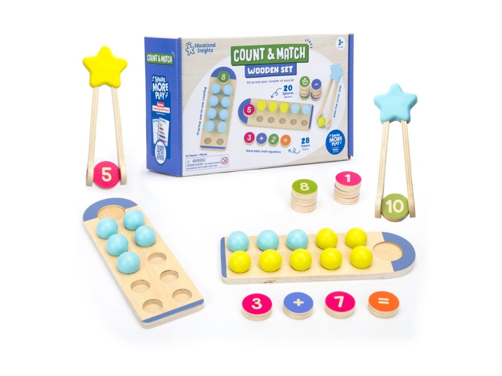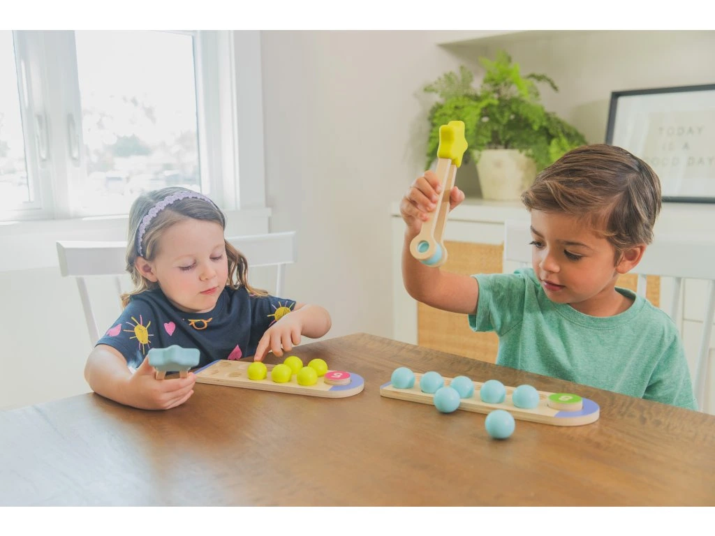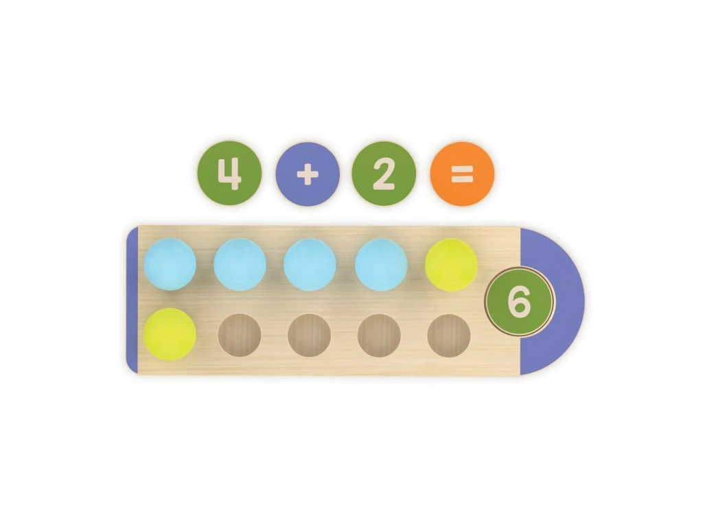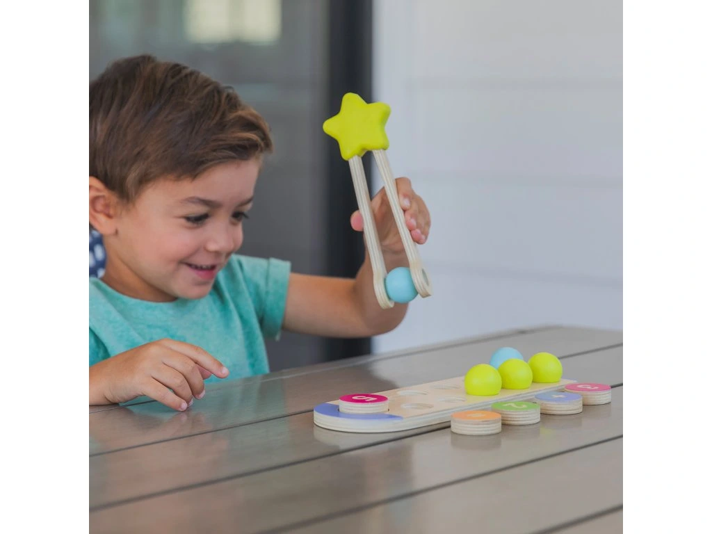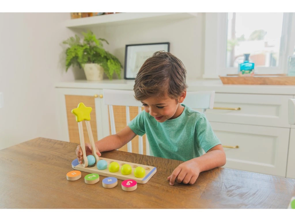 Zábavné počítání a trénink prstíků v jednom! Dřevěná matematická sada s barevnými kuličkami, čísly a velkou pinzetou pomáhá dětem osvojit si první matematické dovednosti a zároveň posiluje jemnou motoriku. Pomocí barevných kuliček, čísel a symbolů si děti přirozeně osvojují základy matematiky – od rozeznávání číslic přes přiřazování množství až po první sčítání a odčítání. Ideální volba pro předškoláky i malé školáky – zábavná, odolná a edukativní!