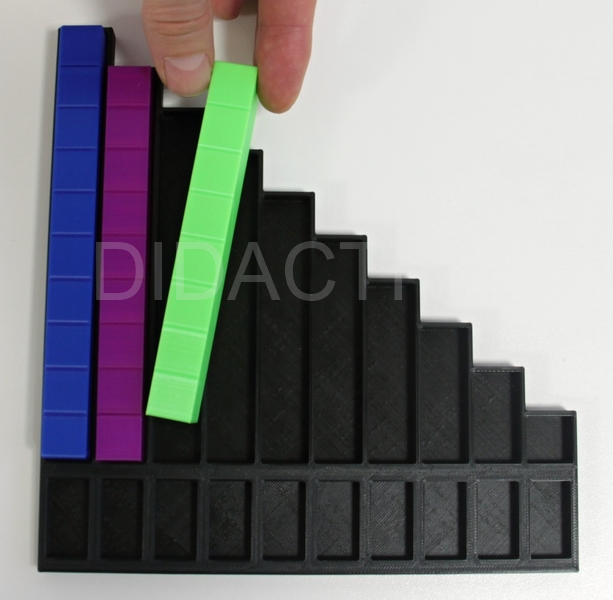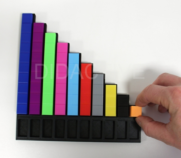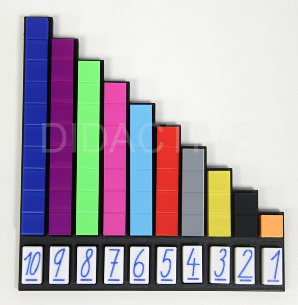 Sada obsahuje základní desku (počítadlo) s prohlubněmi o velikosti 1 - 10 jednotek pro vkládání odpovídajících velikostí barevných hranolků. V horní části je prostor pro vkládání identifikačních hranolků. Na jedné straně identifikačního hranolku je uvedeno číslo a na protilehlé straně je stejné číslo znázorněno odpovídající mřížkou. Sada hranolků obsahuje po jednom ks od každé délky (1 až 10 jednotek).