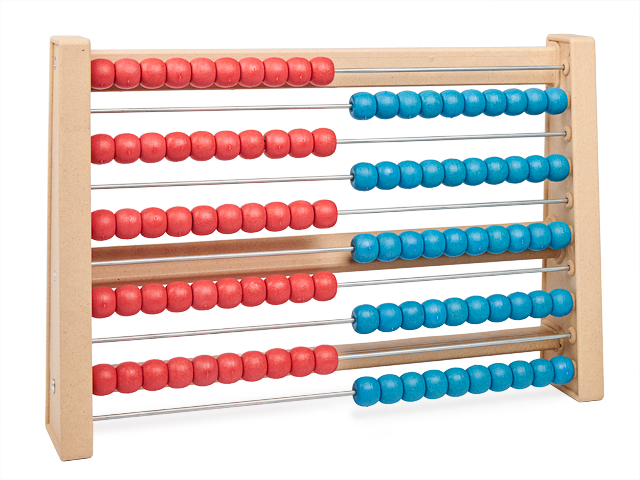 Klasická početní pomůcka na lavici pro jednoho žáka. Rám počítadla a kuličky jsou vyrobené z recyklovaného dřeva: RE-Wood®.