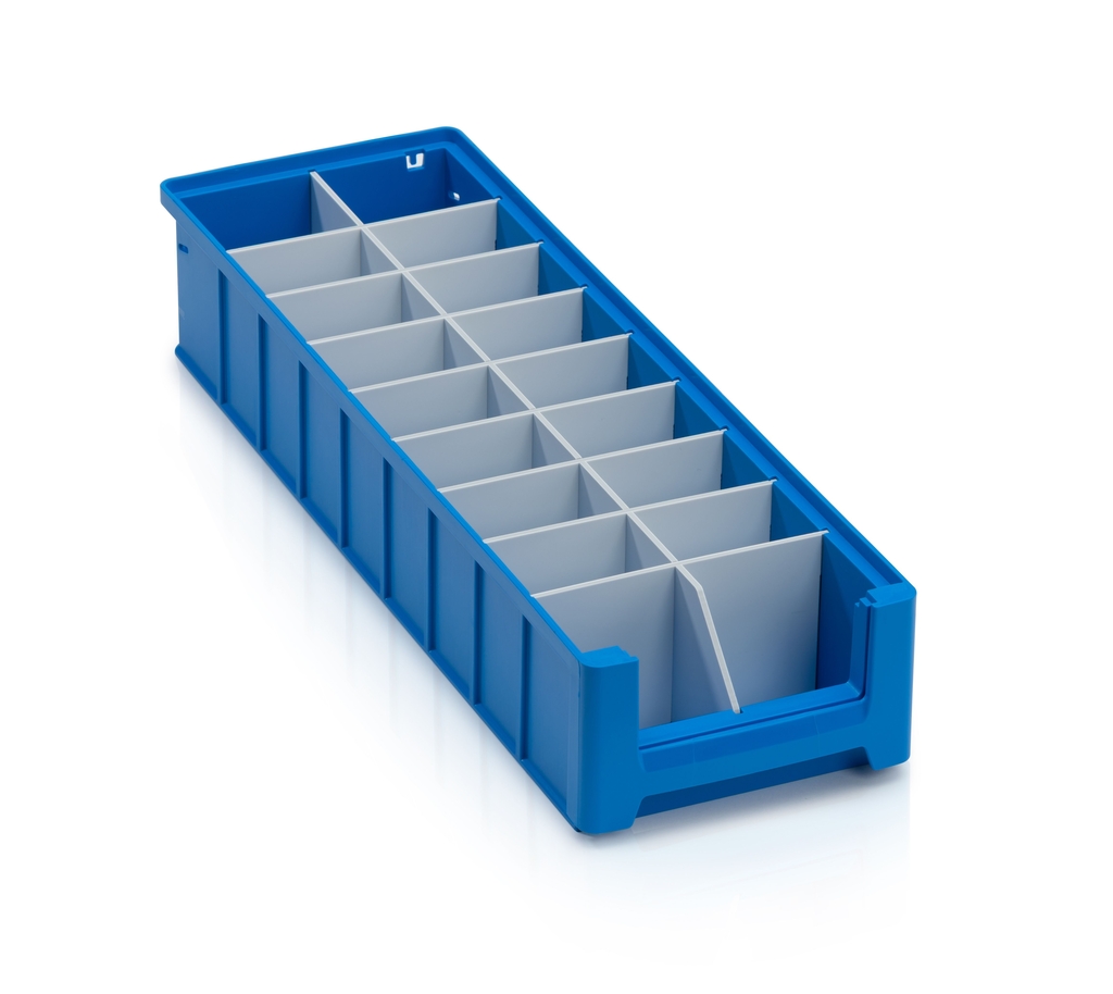 Tato varianta podélné příčky je navržena s výřezy, které umožňují kombinovat další příčné předěly a vytvořit tak jemnější a flexibilnější členění v regálovém boxu. Díky přesnému uchycení do vodicích drážek zůstává stabilně na svém místě. Ideální řešení pro detailní třídění menších komponentů a součástek. Vhodné pro TBA-964300, TBA-964310, TBA-964320.