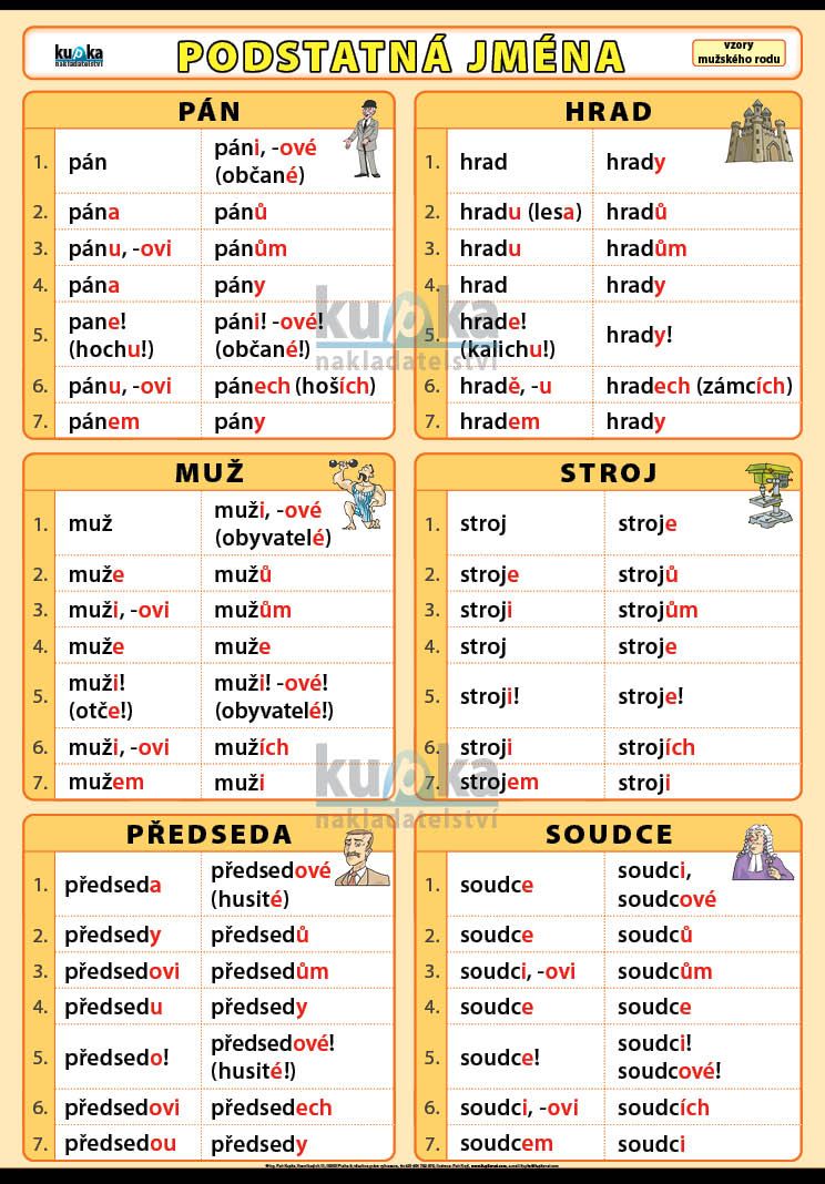 Nástěnný obraz pro výuku skloňování podstatných jmen mužského rodu