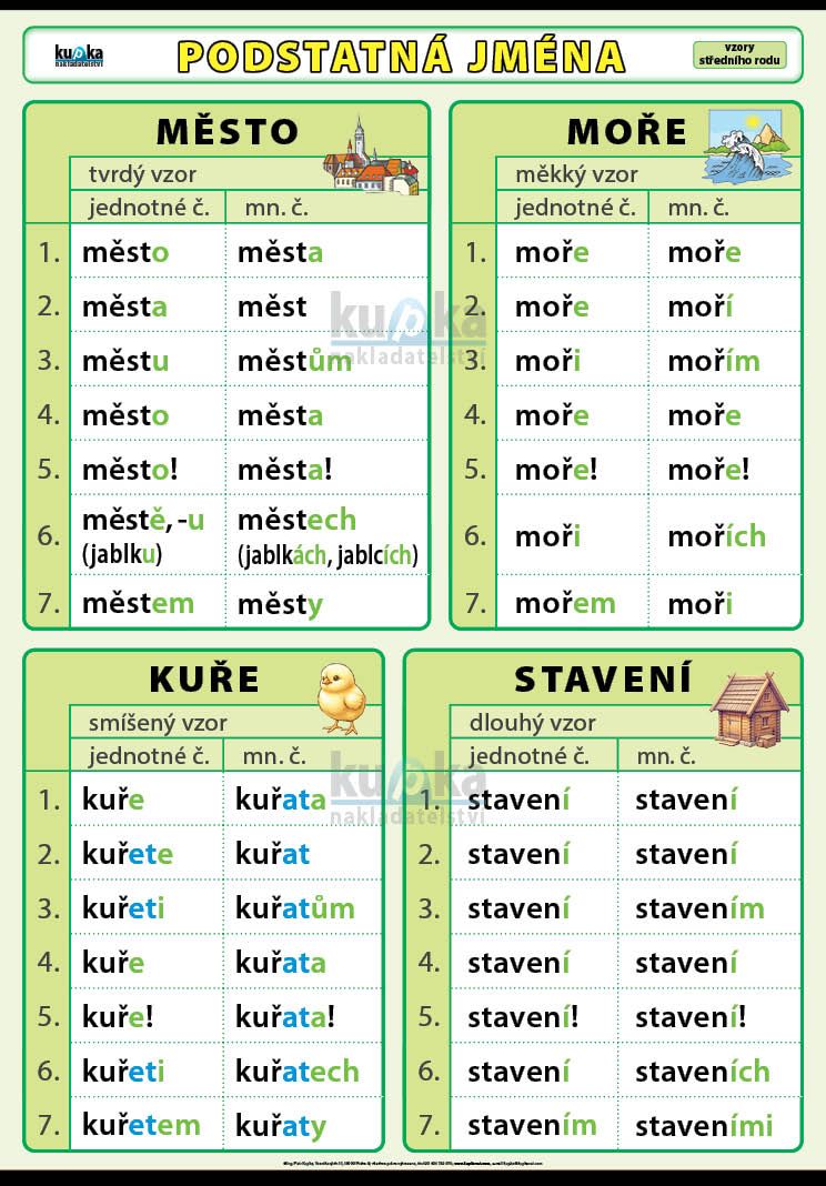 Nástěnný obraz pro výuku skloňování podstatných jmen středního rodu.