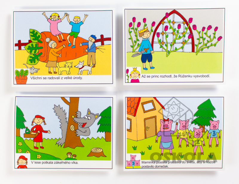 Sada obsahuje 48 velkých karet (9 x 12 cm) s pohádkovými posloupnostmi.