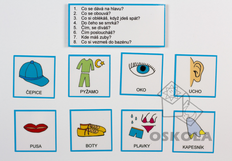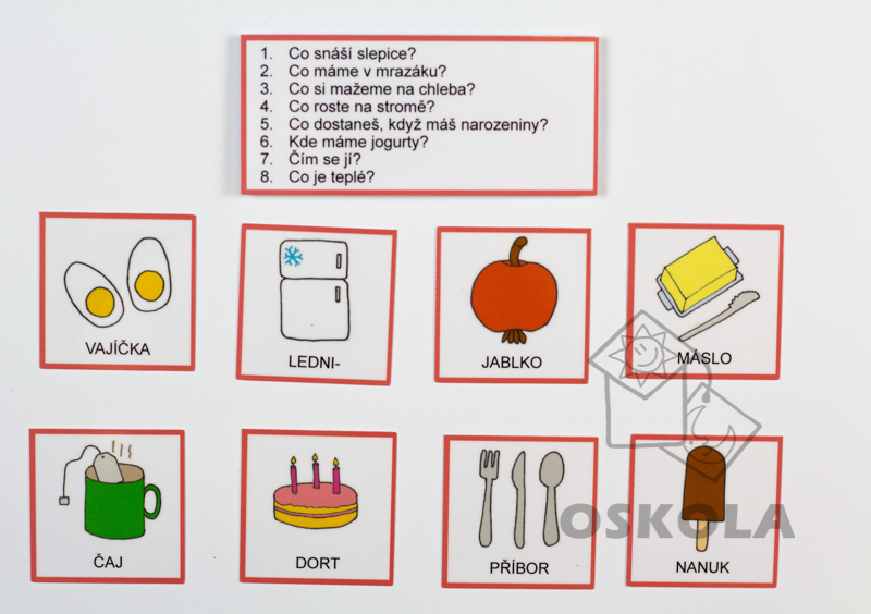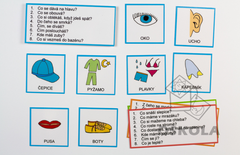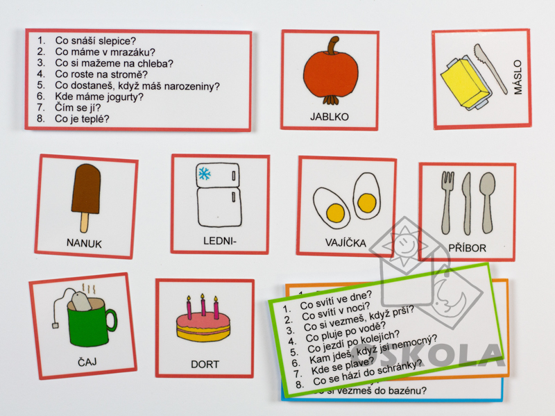 Ptáme se dítěte na otázky a nabídneme mu 8, popřípadě méně kartiček k odpovědi.