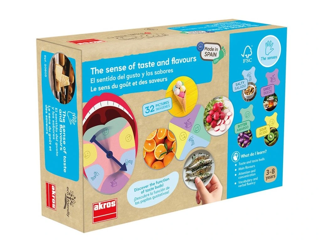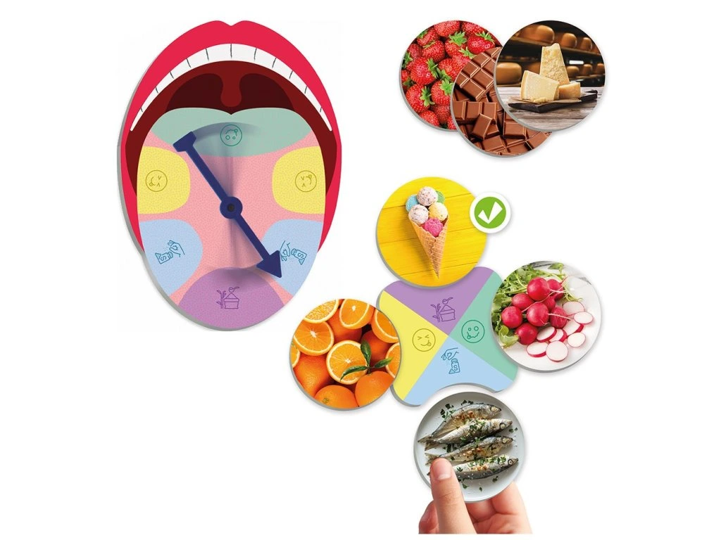 Objevte roli chuťových pohárků! Zjistěte, jak funguje náš jazyk - smysl pro chuť. Asociační hra se skutečnými obrázky, která dětem umožňuje identifikovat a poznávat potraviny podle základních chutí: sladké, slané, hořké a kyselé. Zároveň se děti naučí, ve které oblasti jazyka se tyto chutě nacházejí.