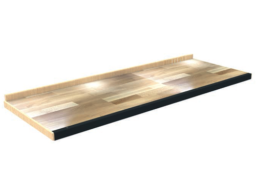 Kvalitní pracovní deska z bukové spárovky. Zadní vyvýšená protipřepadová hrana. Přední hrana opatřena ochranným plechem.