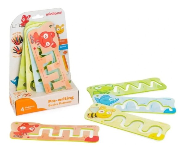 Šablony pro zábavné procvičování kreslení čar, které pomáhají osvojit si návyky pro správné psaní. Práce s předlohami procvičuje trpělivost, grafomotoriku i prostorovou orientaci. Lze je použít na různé povrchy s tužkami, pastelkami, fixami i tenčími křídami. Vyrobené ze silného, odolného a vysoce kvalitního kartonu.
