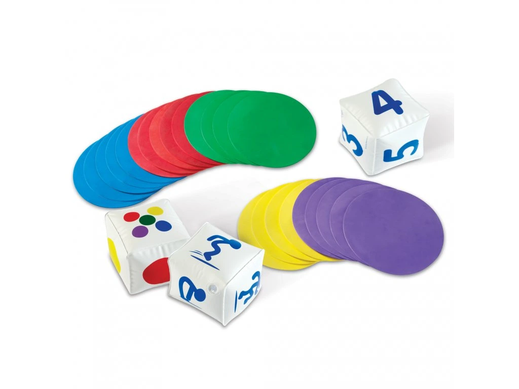 Stačí hodit kostkami a ty už nám prozradí, co máme dělat. Pohybový set aktivit vhodný do mateřských škol a na první stupeň základních škol. Barevné pěnové disky a tři nafukovací kostky!
