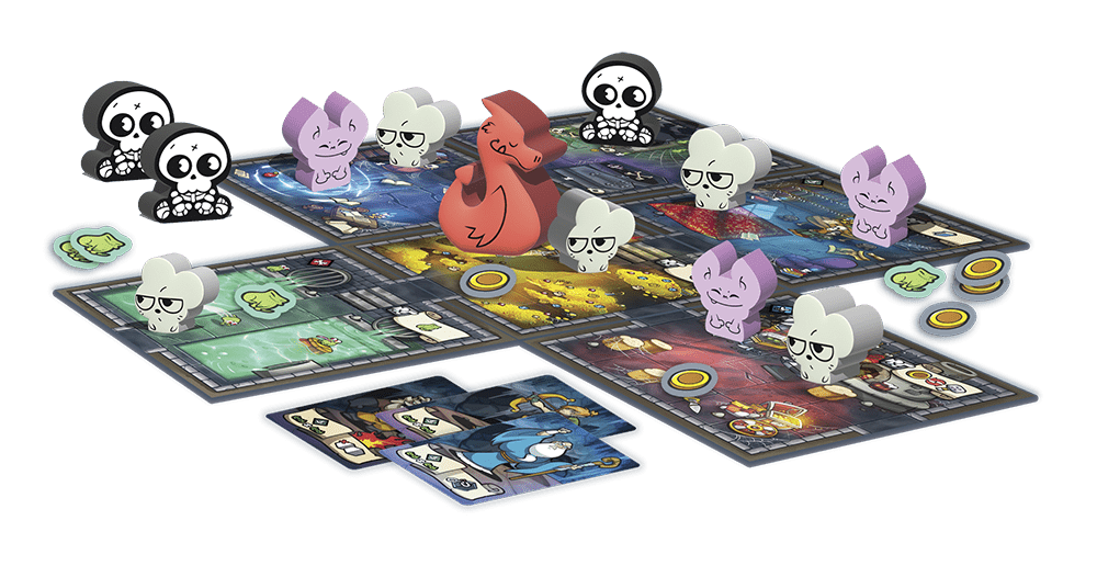 45 dřevěných figurek, 12 desek místností, 222 karet, 96 žetonů, 1 kniha podzemí, česká pravidla hry.
