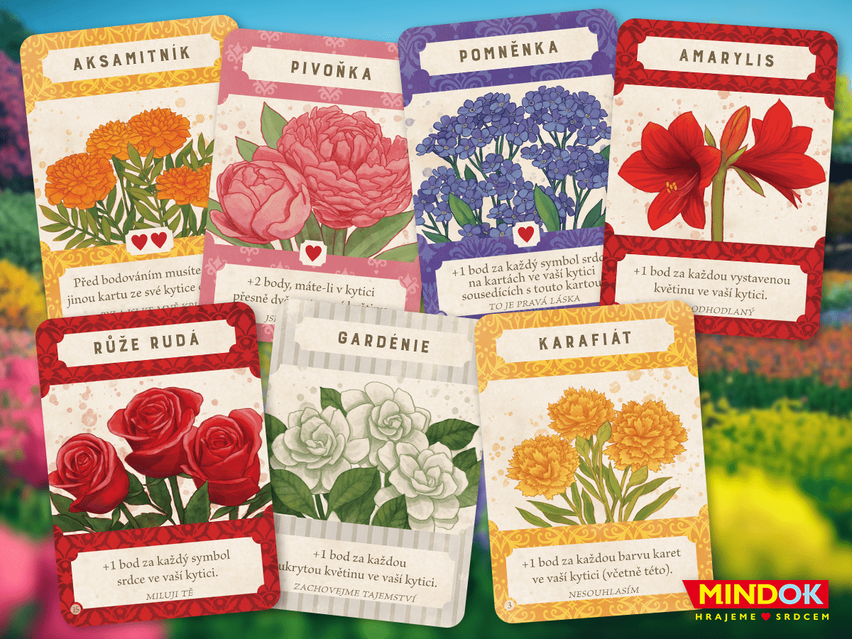 V této chytré květinové hře je vaším úkolem sestavit vítěznou kytici skládáním karet, které nabízíte soupeřům jak skrytě, tak veřejně. Musíte pečlivě promýšlet každý tah, abyste získali co nejlepší kombinaci. Hra procvičuje taktické myšlení a přináší radost z poznávání skrytých významů květin, které jsou krásně zobrazeny na kartách.