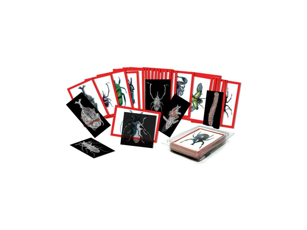 Reálné obrázky broučků jsou tištěny na oboustranných kartách. Z jedné strany pozorujete broučky ze shora, na druhé straně kartičky je konkrétní hmyz ukázán ze spodní části. Ke každému broučkovi je k dispozici rentgenový snímek, díky kterému můžete na světle pozorovat, jak vypadá uvnitř. Vhodné pro použití i na světelném LED panelu.