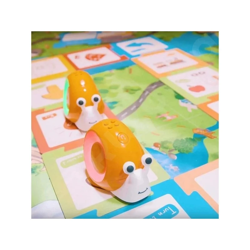 Šnek Qobo má uvnitř těla ulity zabudovaný systém, který dokáže přečíst kódování z jednotlivých programovacích karet. Balení obsahuje 2 sady karet - směrové a karty s funkcí. Při volné hře je Vaším úkolem dostat postavičku z karty Start na kartu se znakem Diamantu. K tomu nám pomohou směrové programovací karty - odbočení vlevo, odbočení vpravo a dopředu. Karty spojte k sobě jako puzzle a Qobo bude následovat pokyny na kartě.