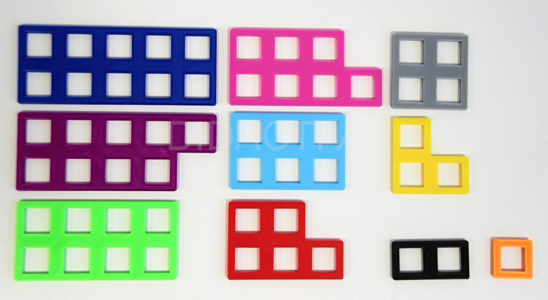 Mřížky jsou sestaveny z jednotkových čtverečků o hraně 25 mm. Každá velikost má vlastní barvu, díky čemuž děti snadno rozpoznají hodnotu jednotlivých mřížek a pracují s nimi intuitivně.