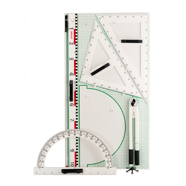 Souprava je vyroba z kvalitního odolného plastu a je dodávána s odkládacím panelem, který je možné připevnit na stěnu. Rýsovací potřeby jsou opatřené magnetickou páskou