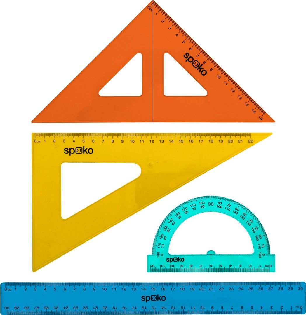 Čtyřdílná sada pravítek, určená pro školní geometrii.