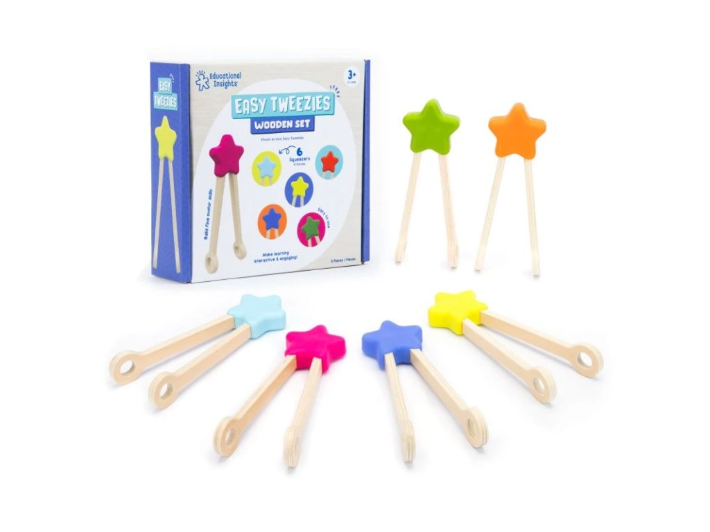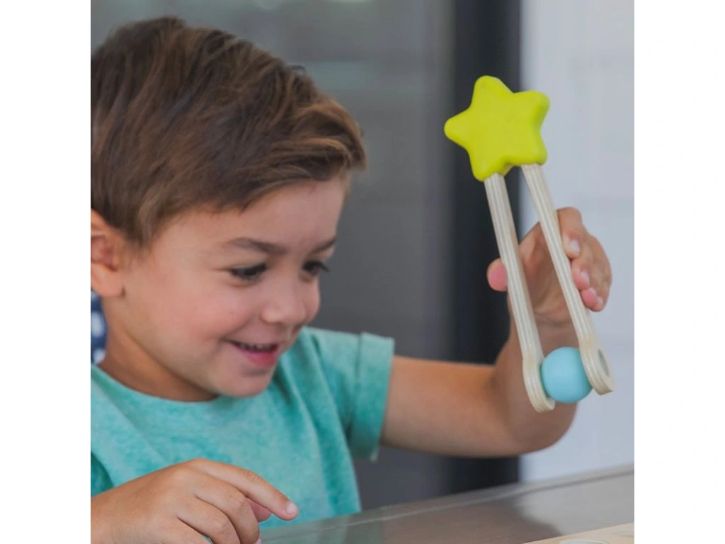 Sada dřevěných hravých pinzet (6 kusů) přináší skvělou možnost, jak podpořit u dětí přirozený rozvoj jemné motoriky a koordinace oko–ruka. Pomůcka je ideální pro předškolní děti i pro ty, které potřebují podporu v oblasti grafomotoriky. Pinzety jsou navrženy tak, aby skvěle padly do dětské ruky a umožnily snadnou manipulaci.