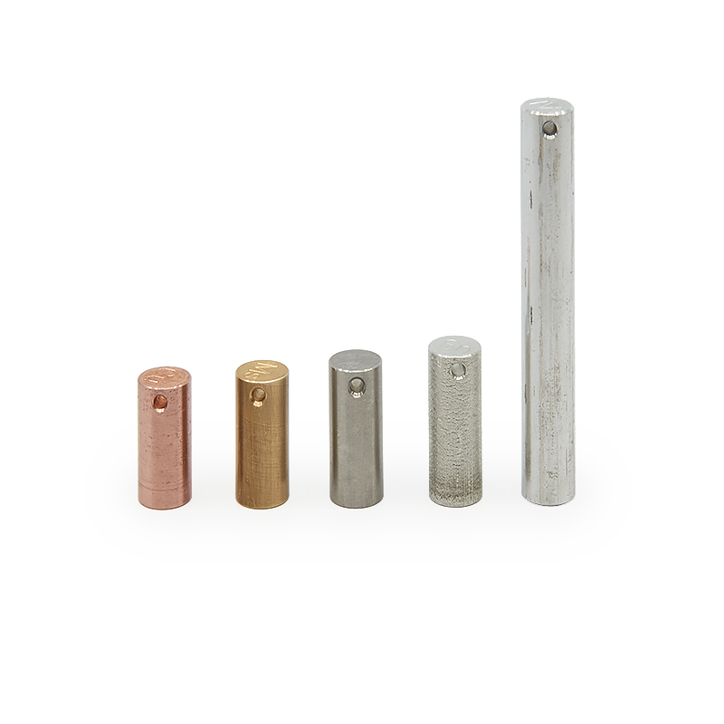 Pomůcka obsahuje 6 válců o stejné hmotnosti a slouží k demonstraci různé specifické hmotnosti rozdílných materiálů.