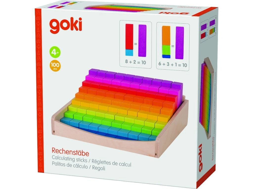 Sada počítacích tyček Goki je ideální pomůckou pro první seznamování dětí s čísly. Barevné tyčky ukazují čísla i odpovídající počet teček, takže dítě hned vidí, jak číslo „funguje“. Díky názornému provedení si děti snáze osvojí základy matematiky a počty si doslova osahají.